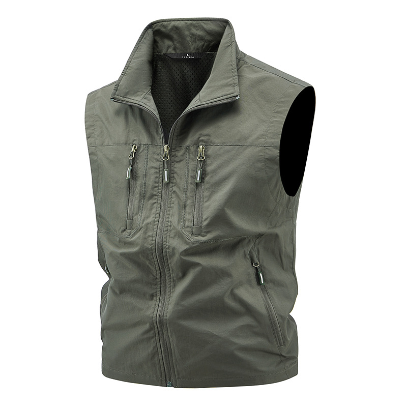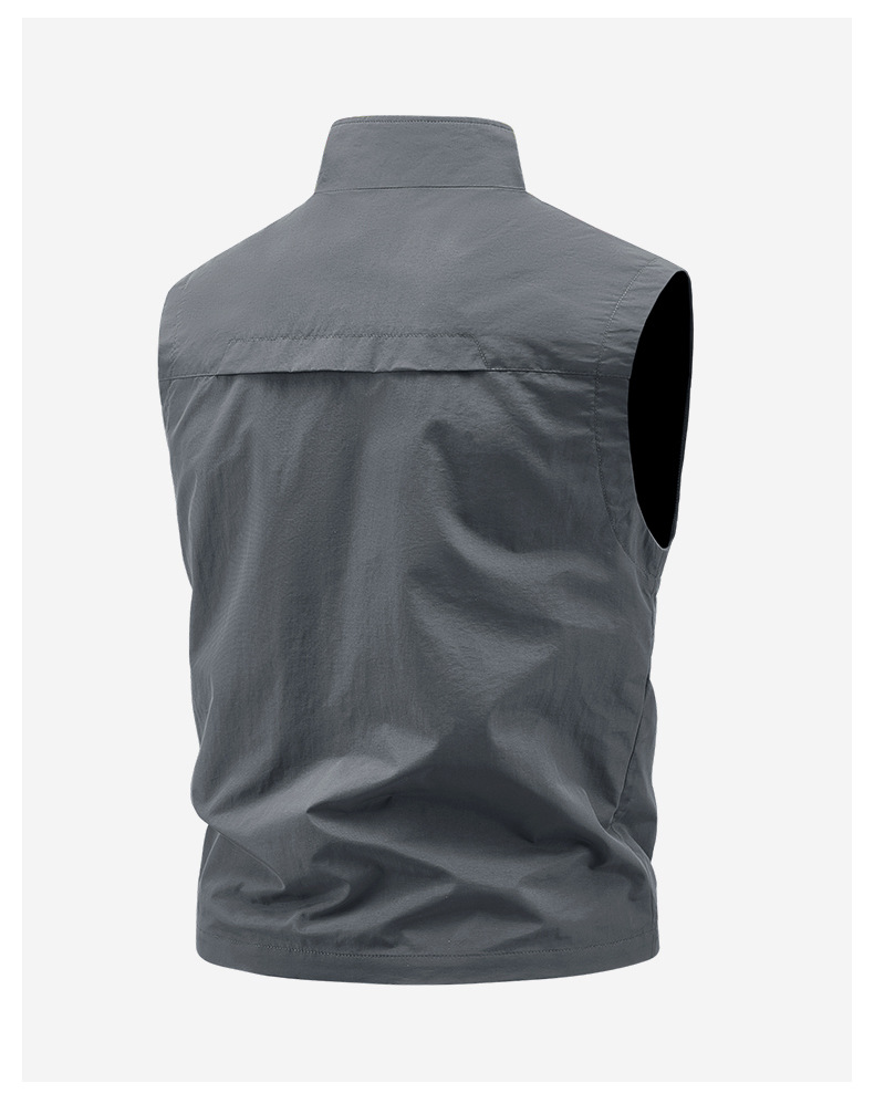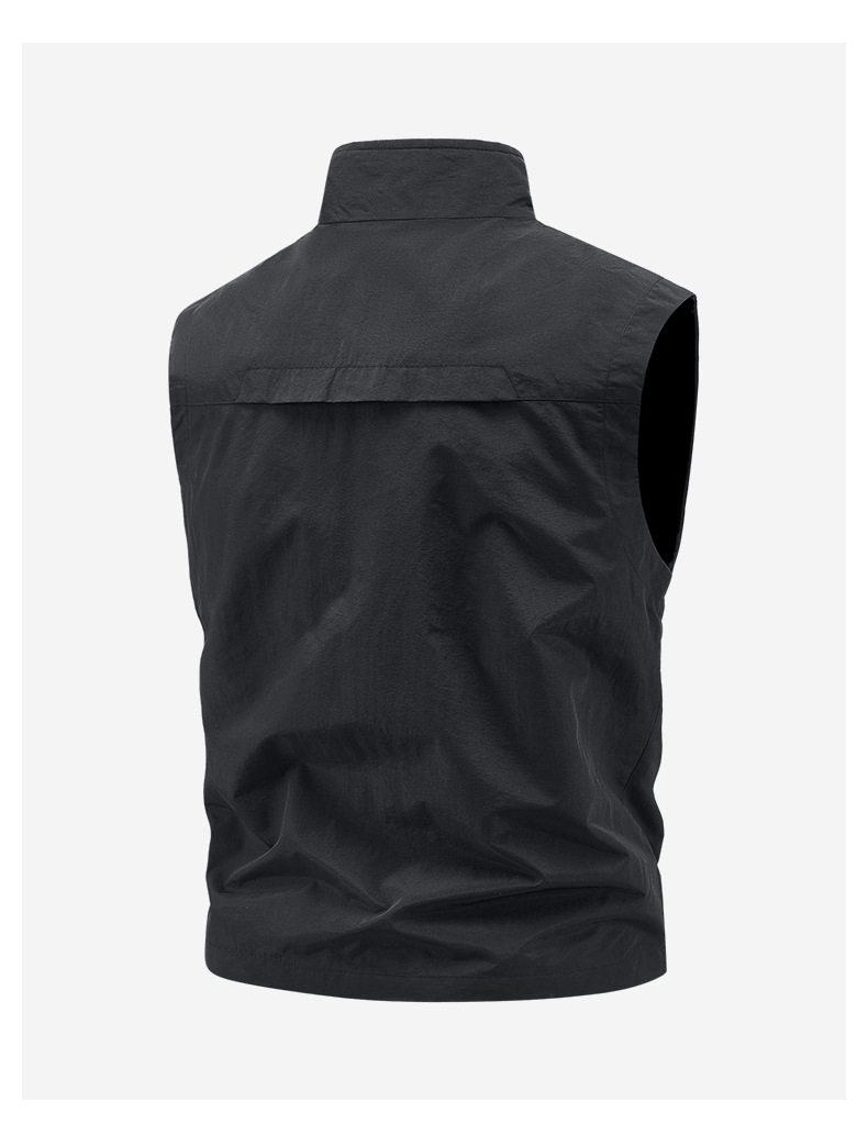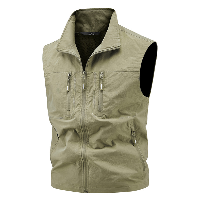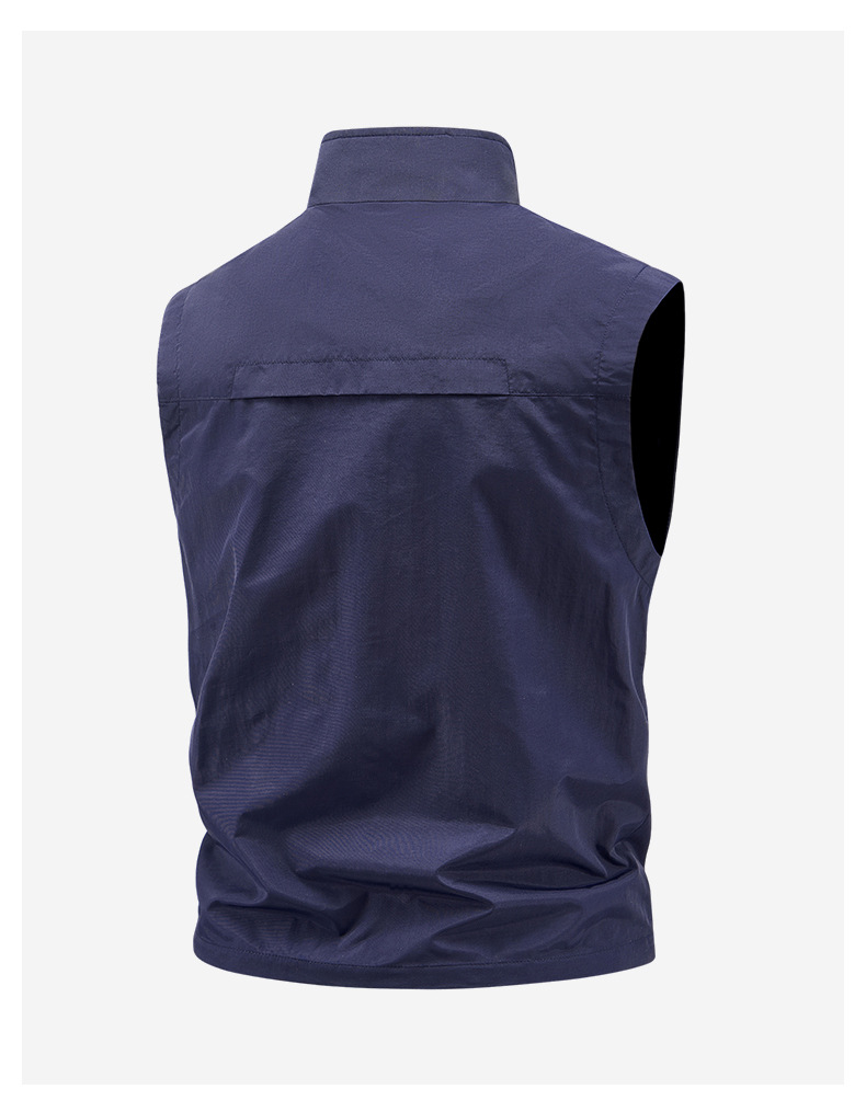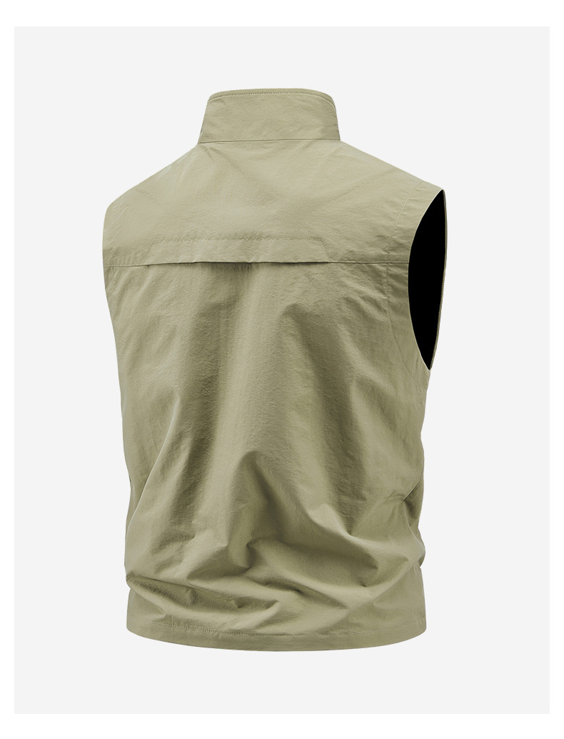 남성용 야외 낚시 조끼, 봄, 가을 얇은 멀티 포켓 작업 조끼, 캐주얼 스탠드 칼라 공동 구매 프린트 조끼 재킷