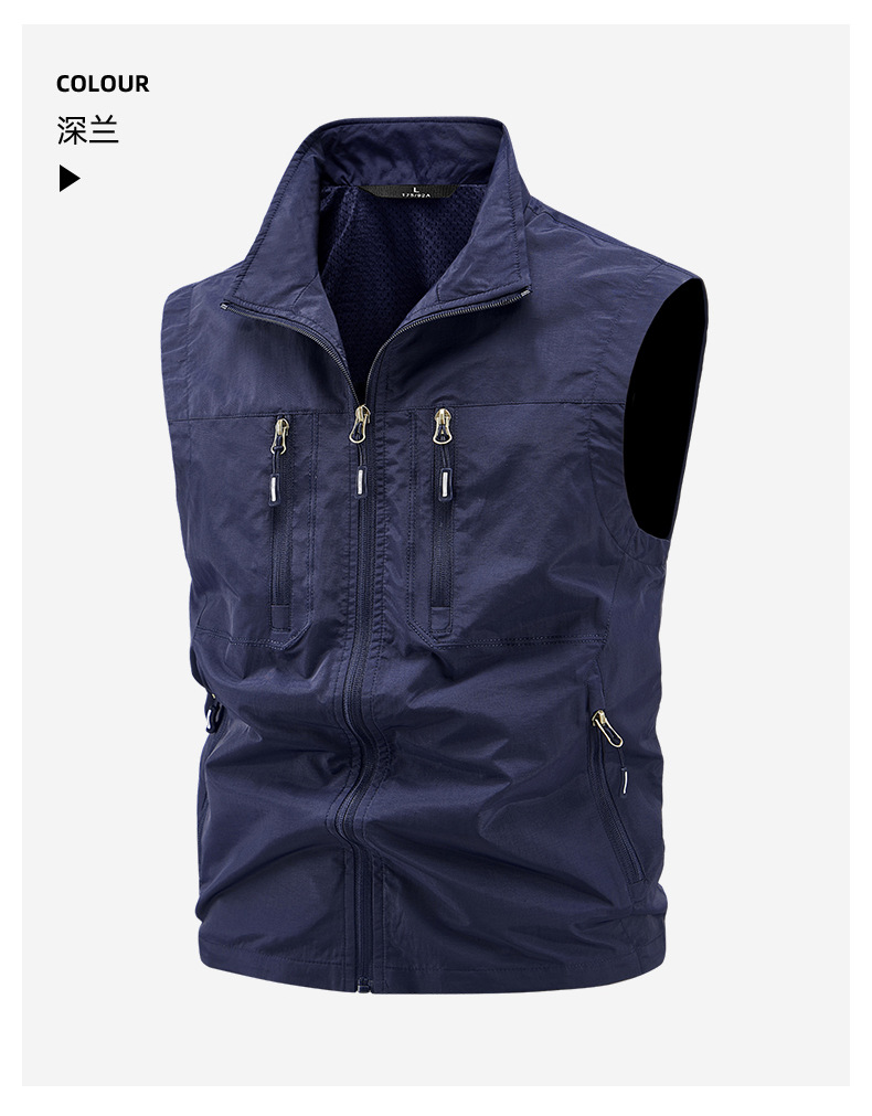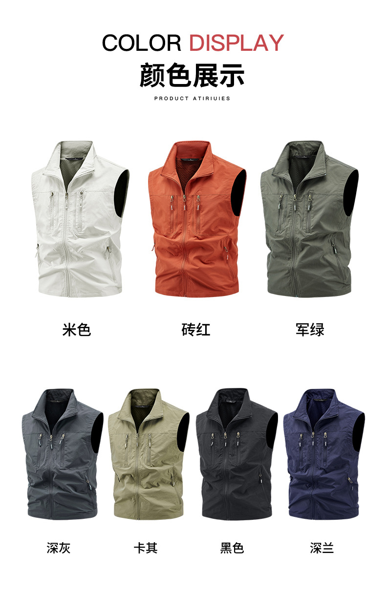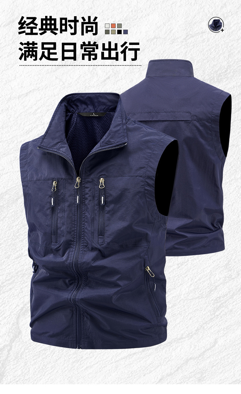 남성용 야외 낚시 조끼, 봄, 가을 얇은 멀티 포켓 작업 조끼, 캐주얼 스탠드 칼라 공동 구매 프린트 조끼 재킷스토어 가기