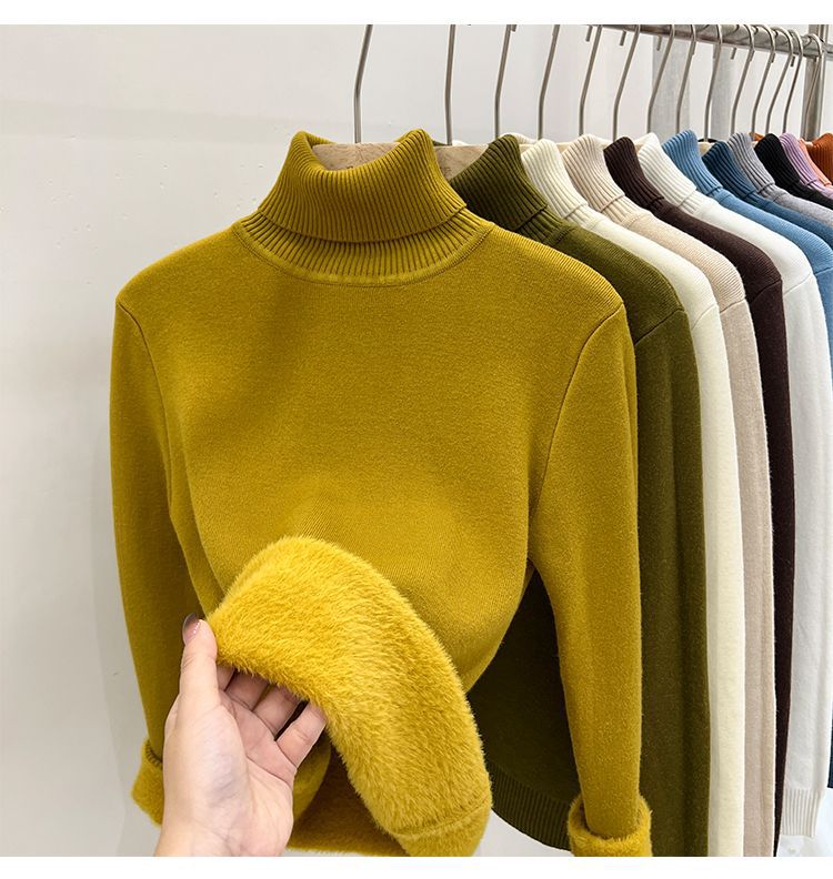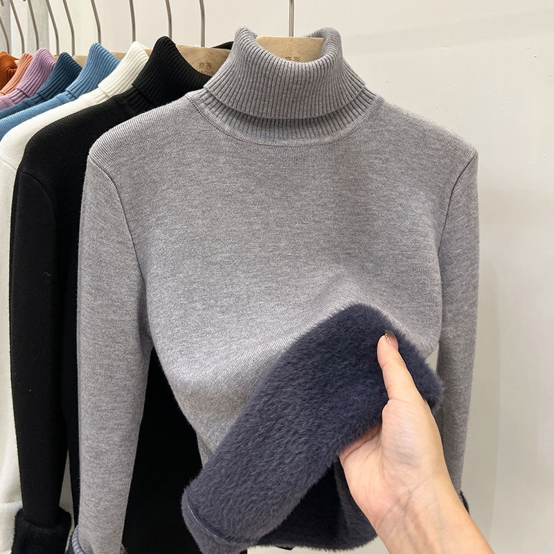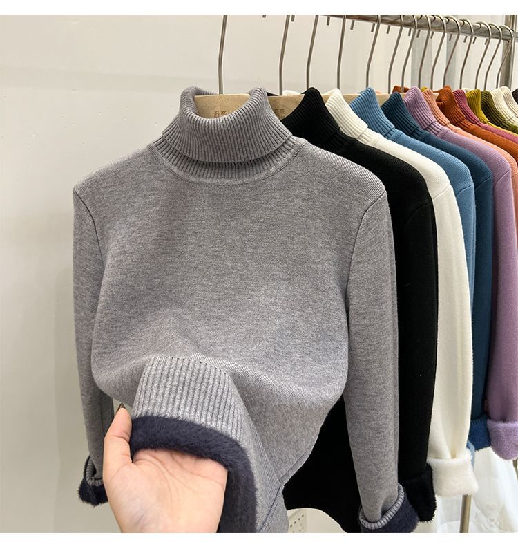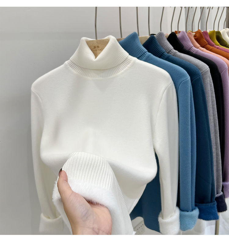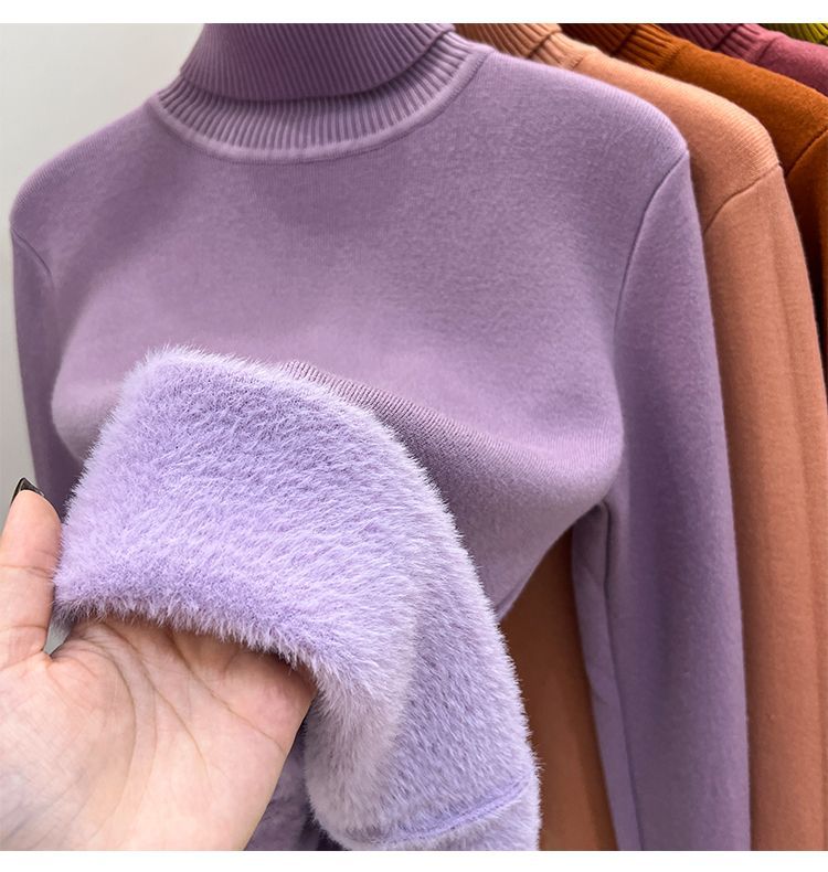 여성용 하이넥 원피스 벨벳 스웨터, 벨벳과 두꺼운 긴팔 이너웨어, 2024 가을 겨울 신상 베이스 레이어 따뜻한 탑, 패셔너블스토어 가기