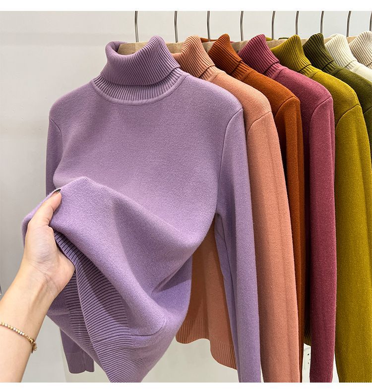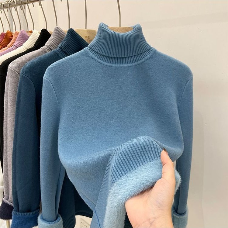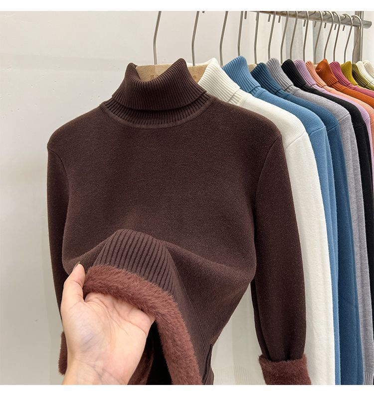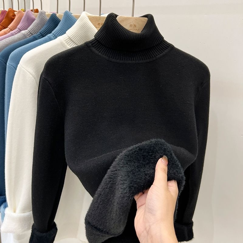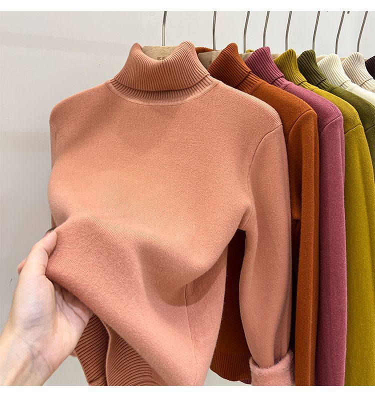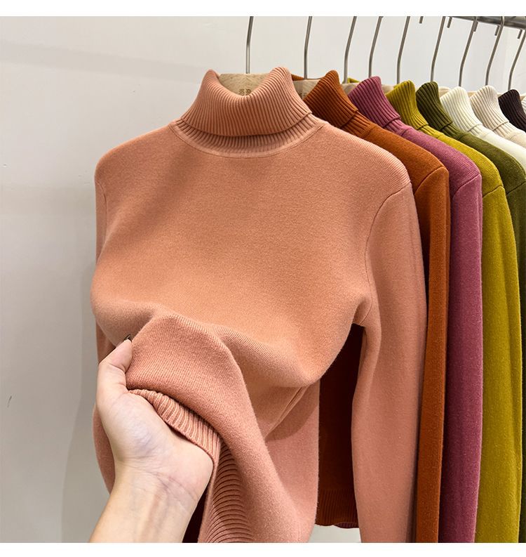 여성용 하이넥 원피스 벨벳 스웨터, 벨벳과 두꺼운 긴팔 이너웨어, 2024 가을 겨울 신상 베이스 레이어 따뜻한 탑, 패셔너블스토어 가기