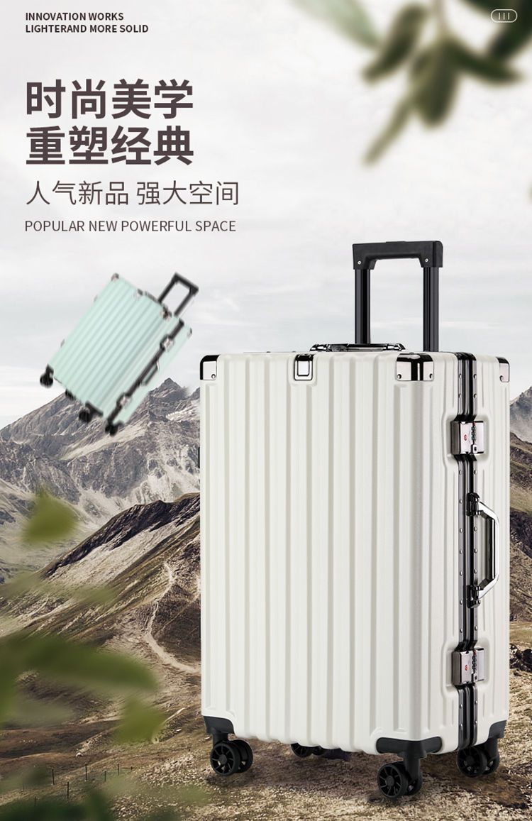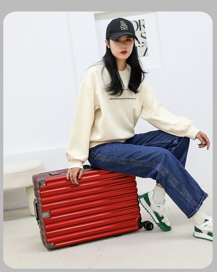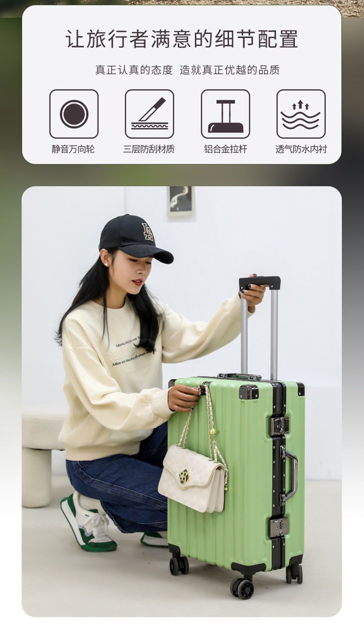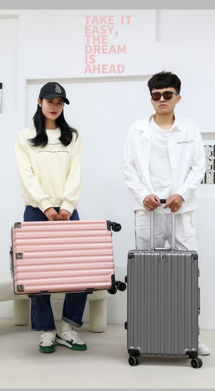 여행가방, 튼튼하고 내구성이 뛰어난 트롤리 케이스, 무소음 휠, 알루미늄 프레임 여행가방, 남녀 학생 비밀번호 상자, 대용량 및 견고함스토어 가기