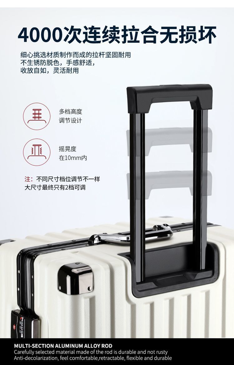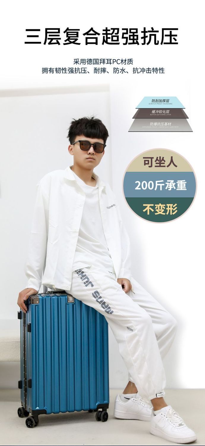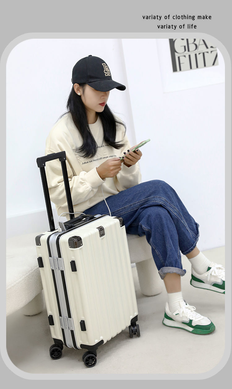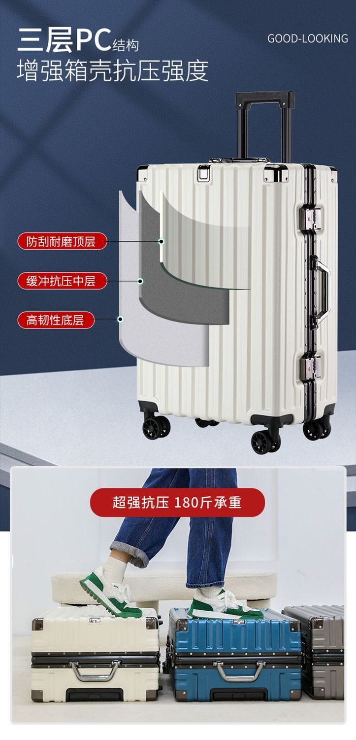 여행가방, 튼튼하고 내구성이 뛰어난 트롤리 케이스, 무소음 휠, 알루미늄 프레임 여행가방, 남녀 학생 비밀번호 상자, 대용량 및 견고함스토어 가기