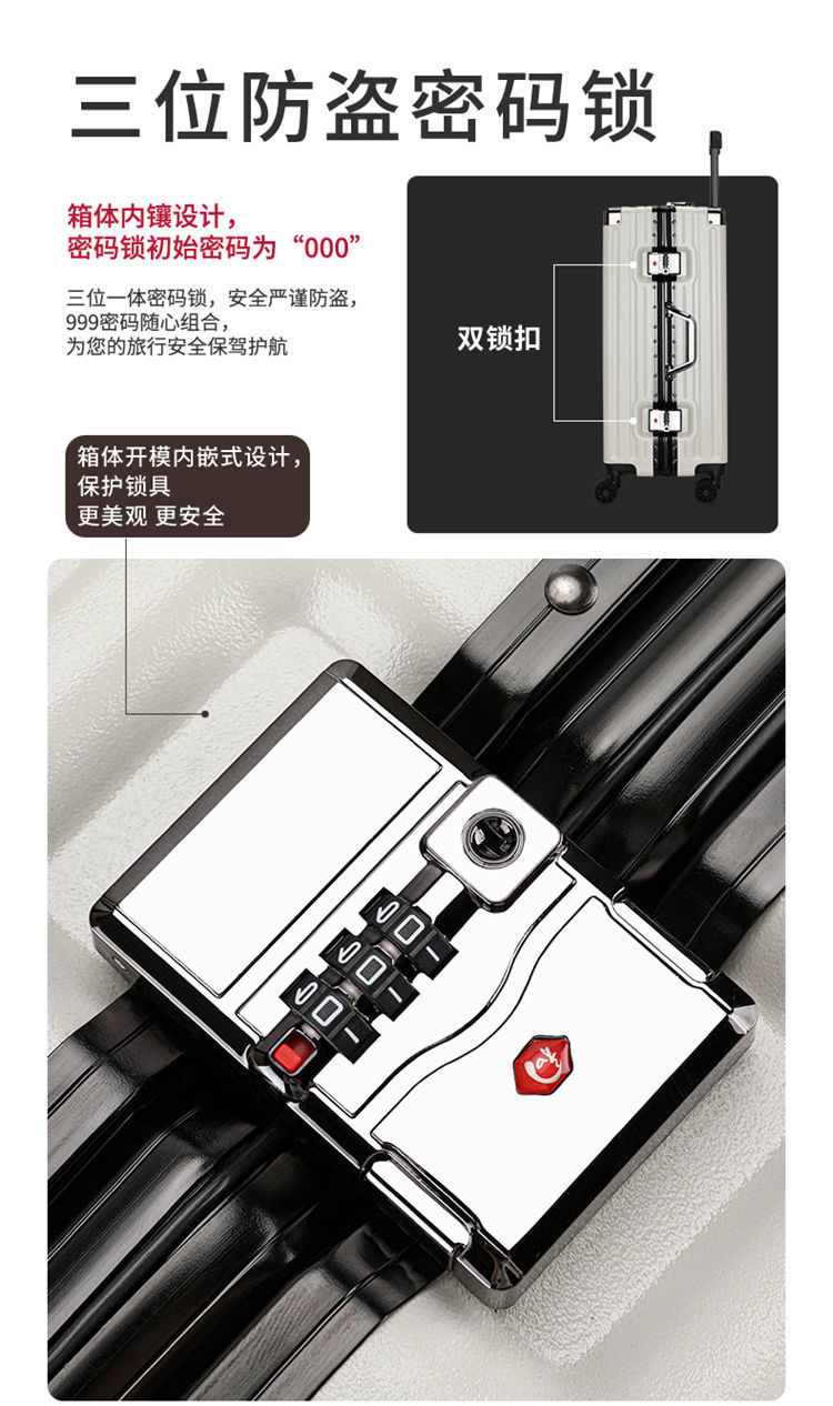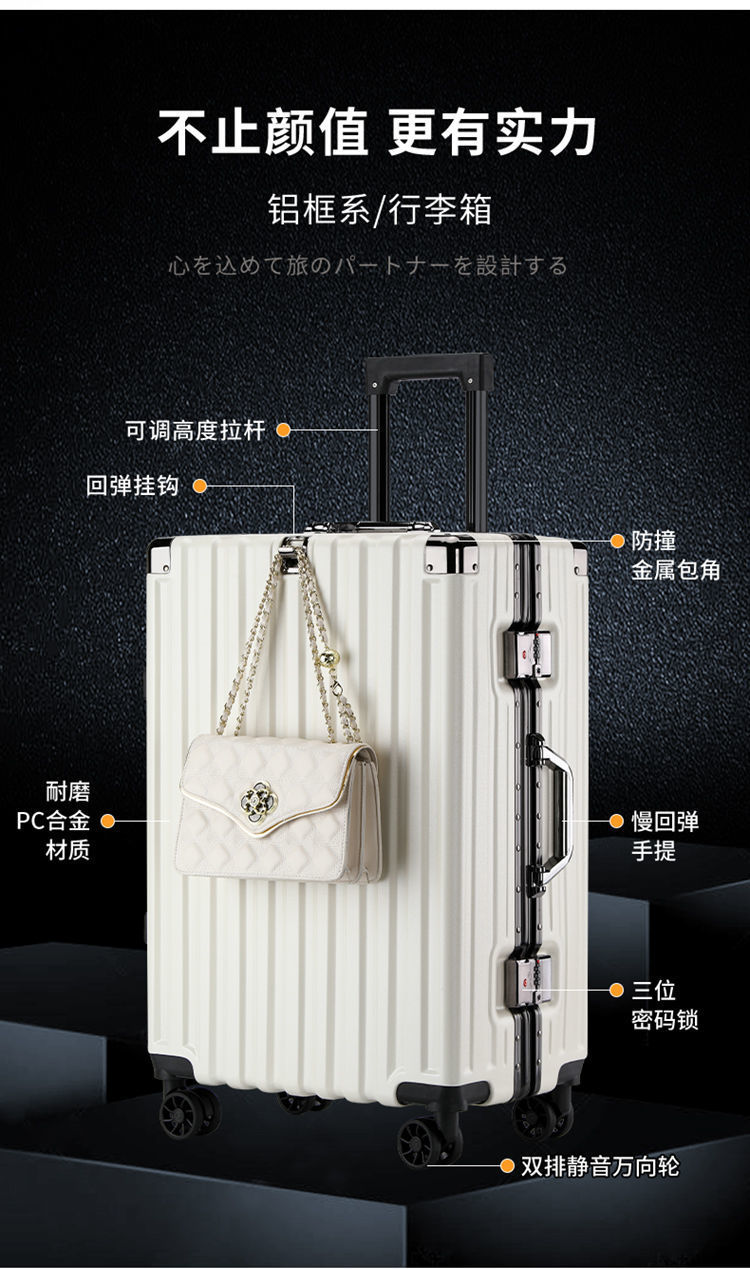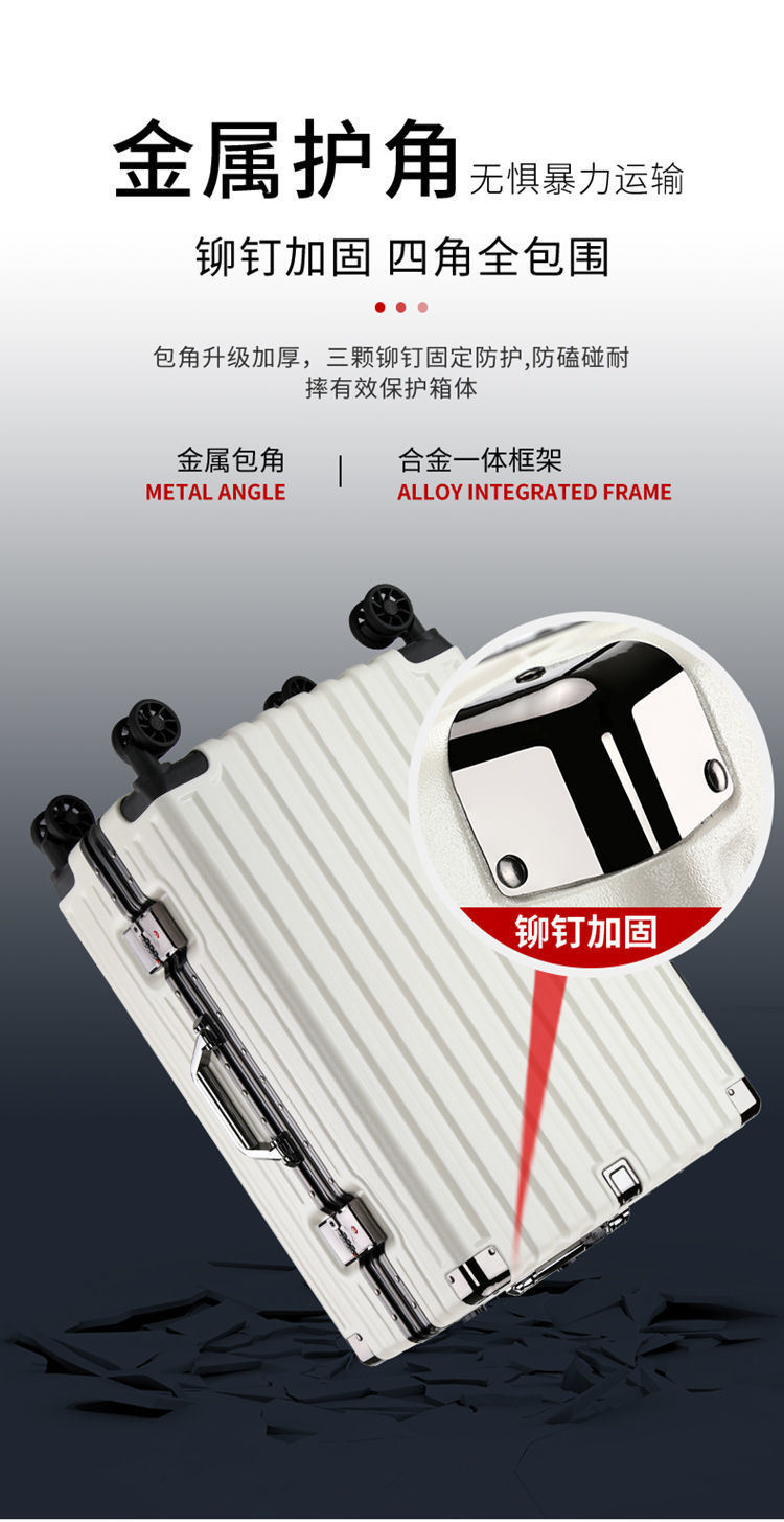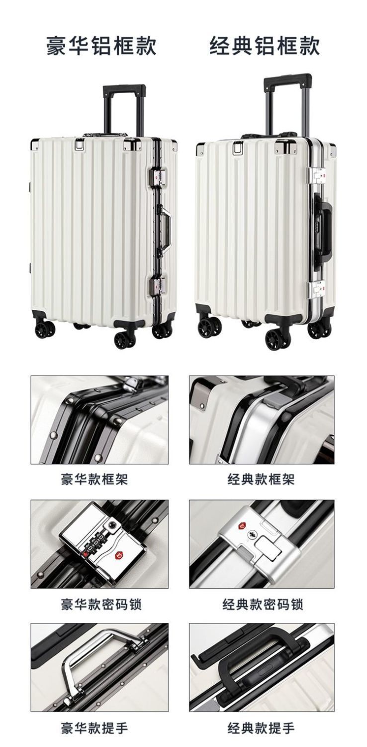 여행가방, 튼튼하고 내구성이 뛰어난 트롤리 케이스, 무소음 휠, 알루미늄 프레임 여행가방, 남녀 학생 비밀번호 상자, 대용량 및 견고함