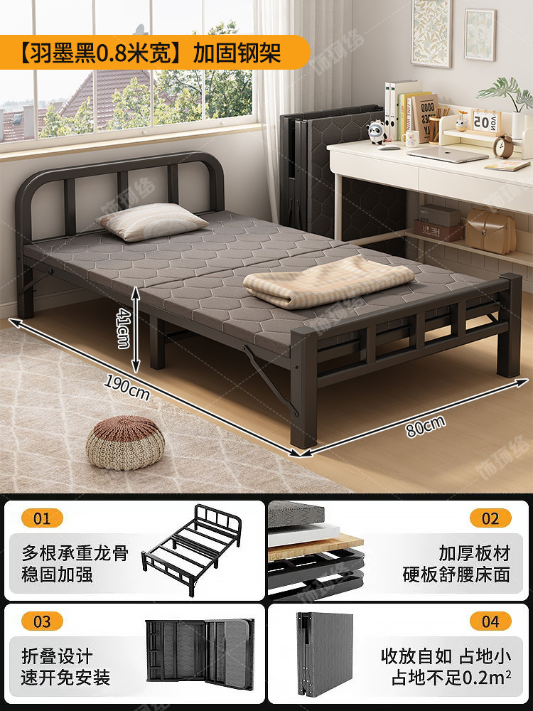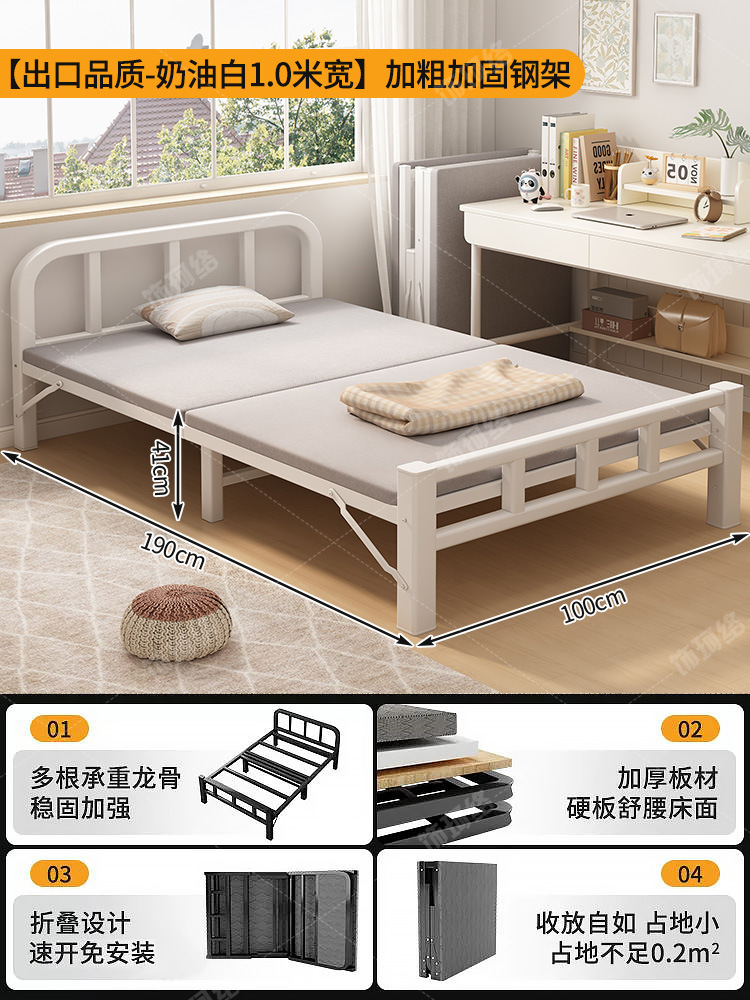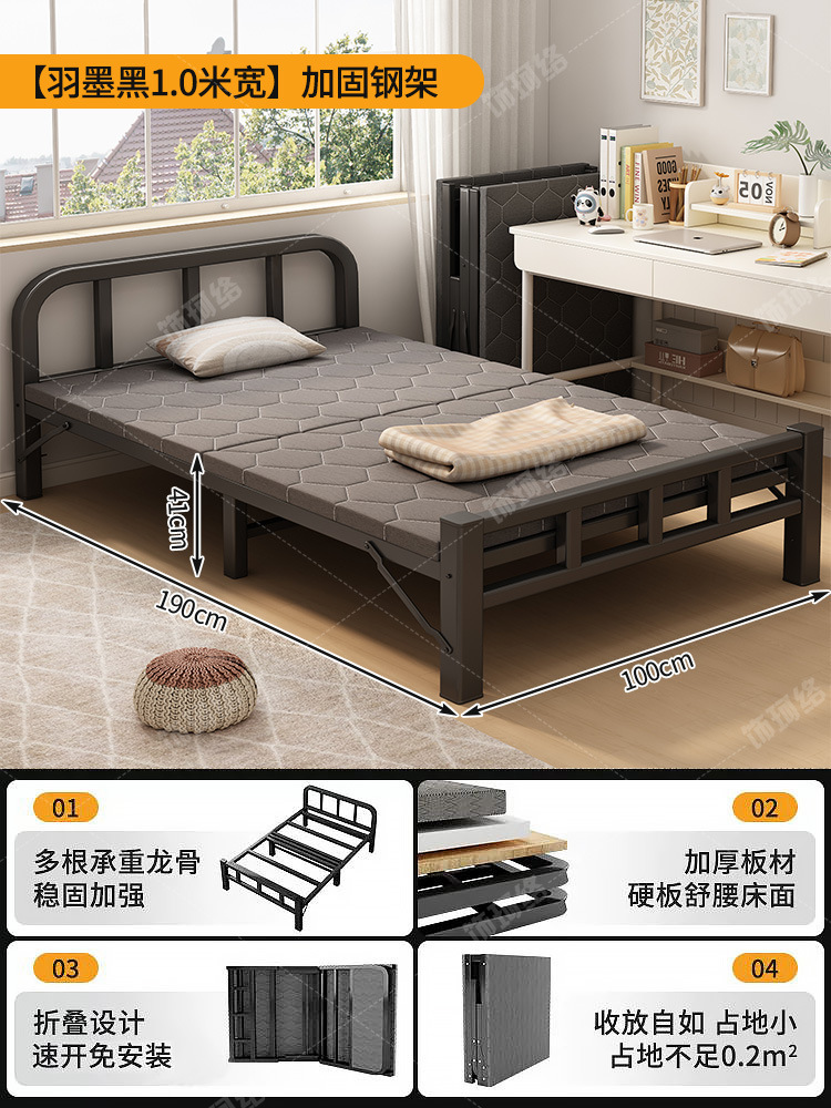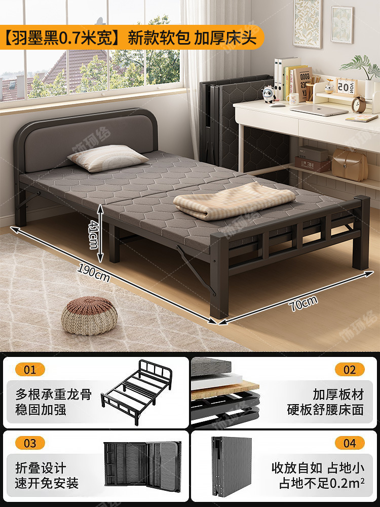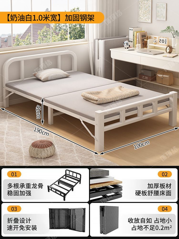 기숙사 철제 침대 1인용 성인용 접이식 침대 싱글 침대 소형 침대 간이 점심 휴식 임대 2AL 더블 홈