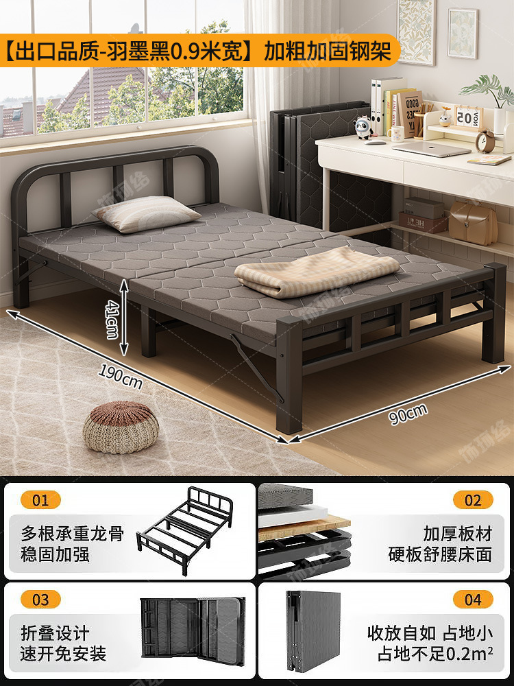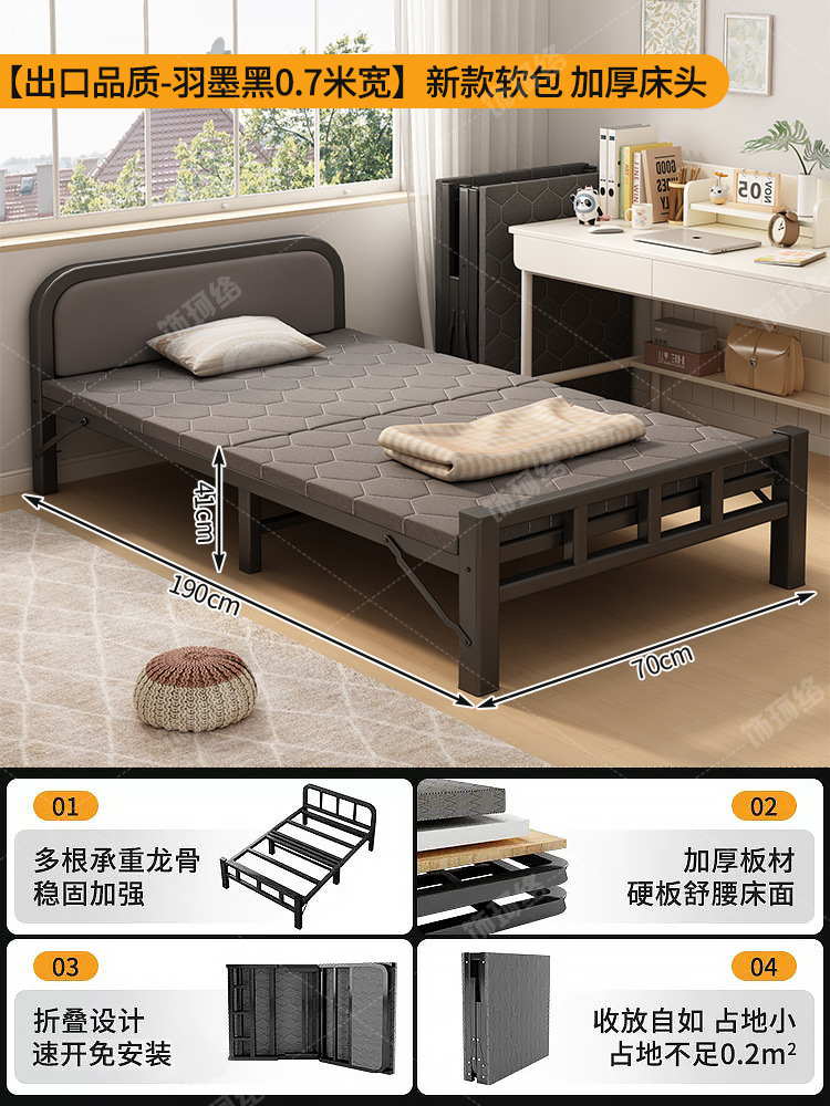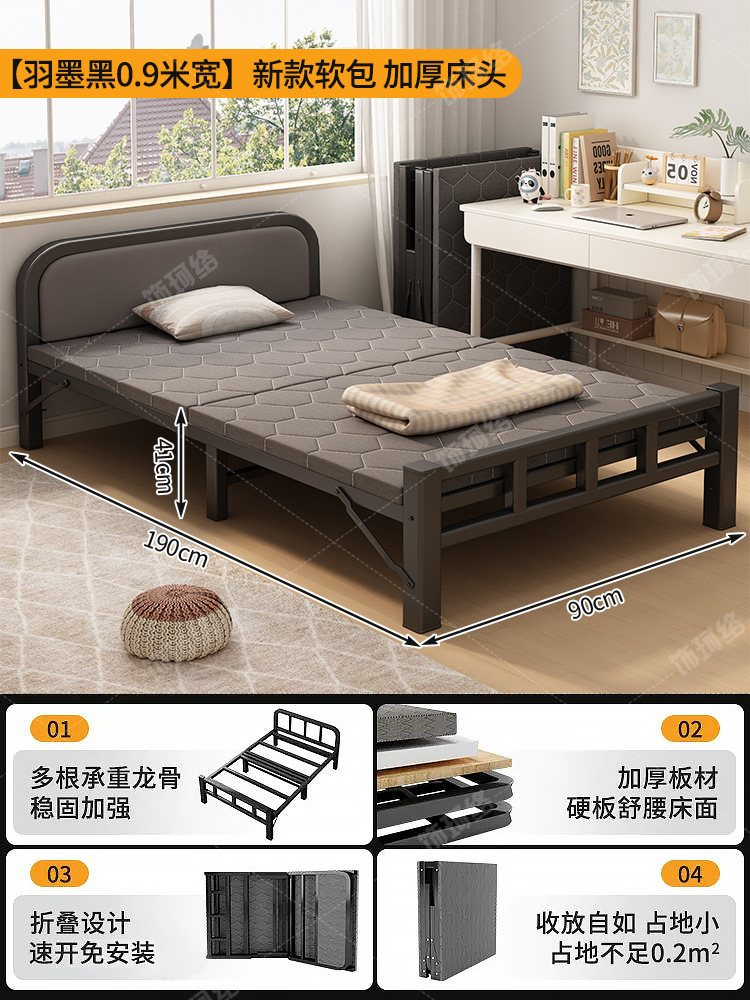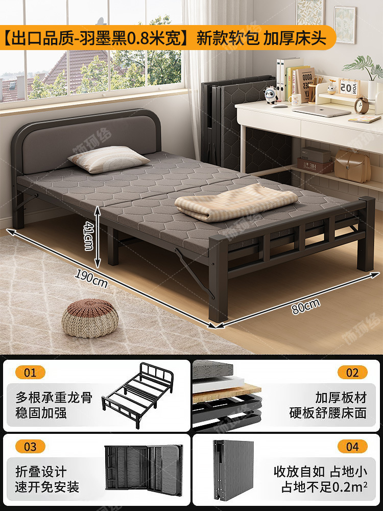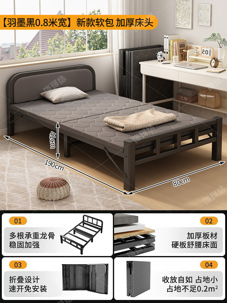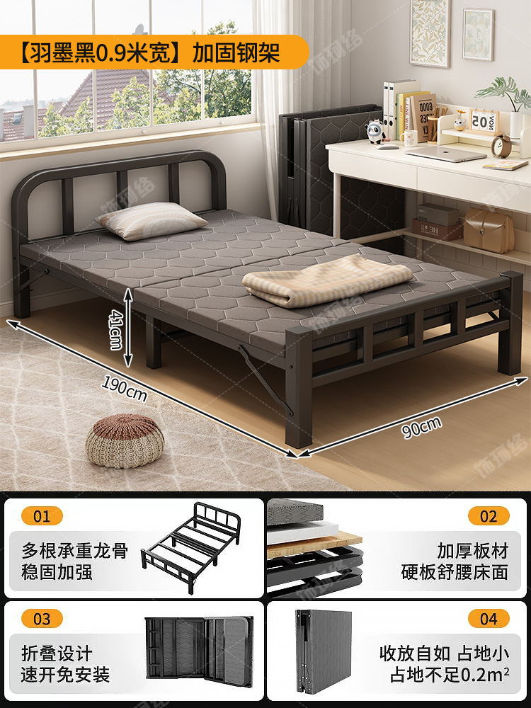 기숙사 철제 침대 1인용 성인용 접이식 침대 싱글 침대 소형 침대 간이 점심 휴식 임대 2AL 더블 홈
