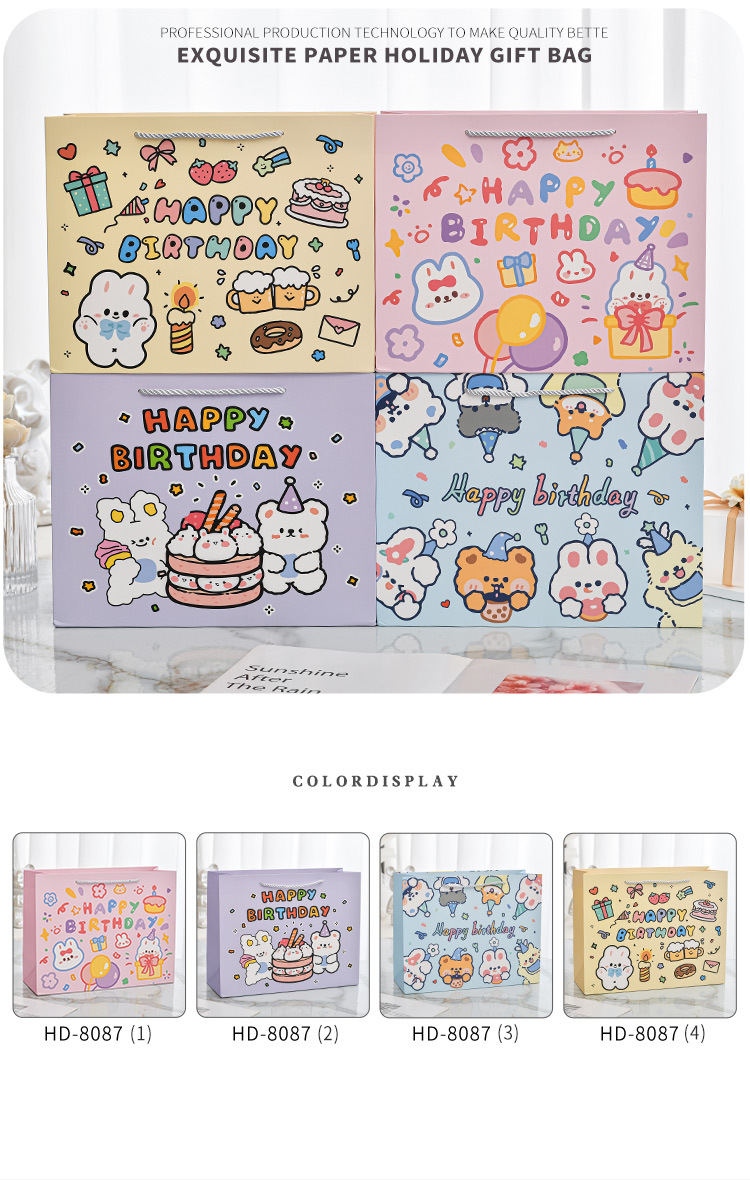 생일 만화 선물 가방 크리 에이 티브 가로 버전 생일 선물 포장 가방 재고 있음 도매 귀여운 핸드백 빅 핑크스토어 가기