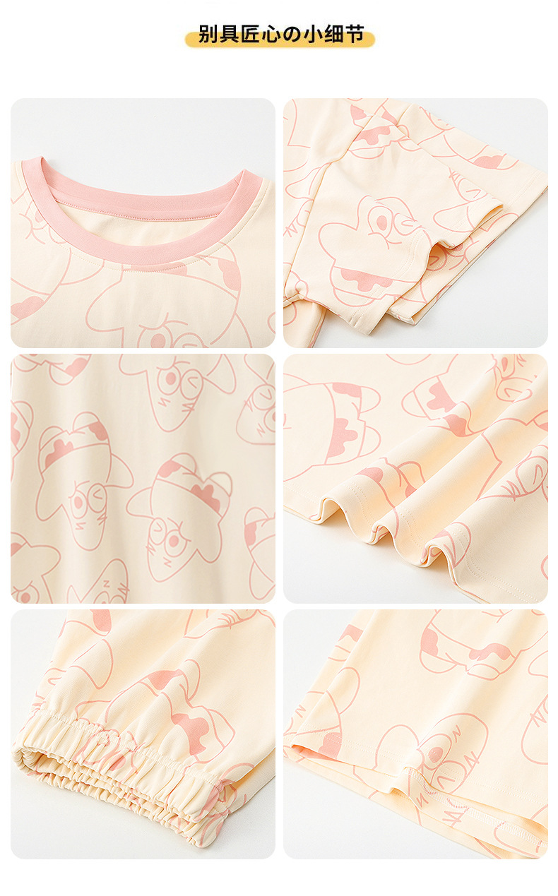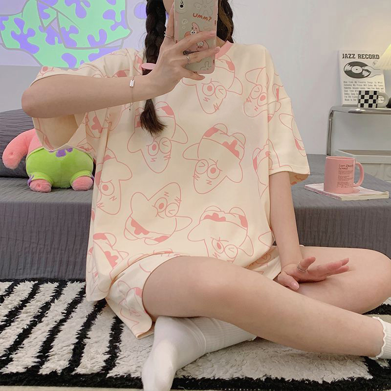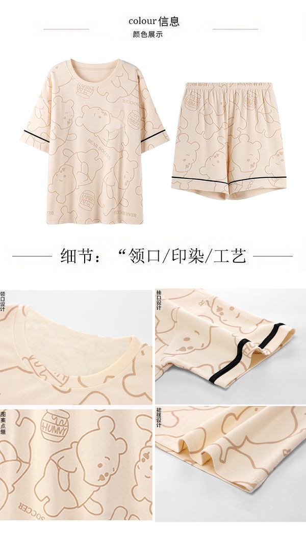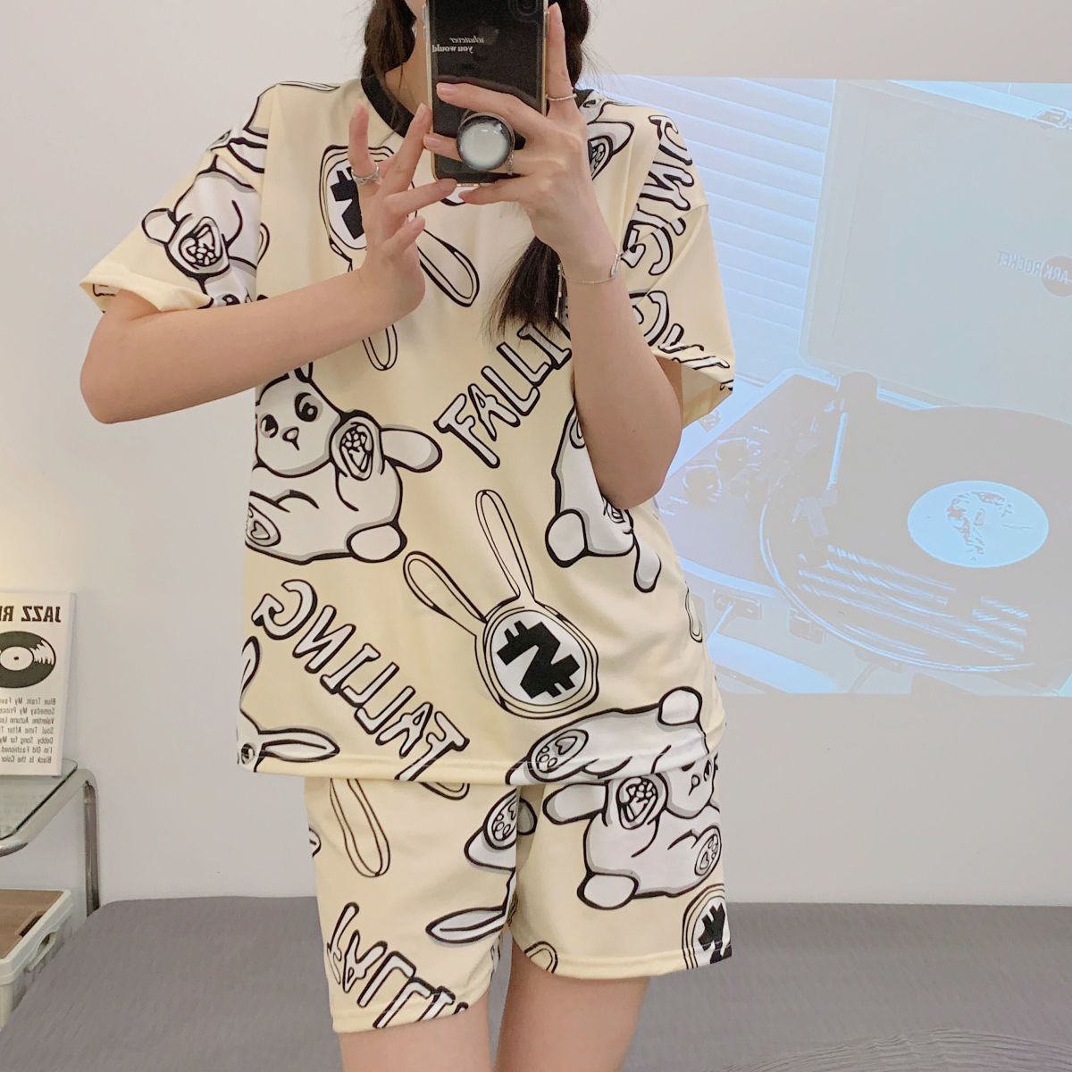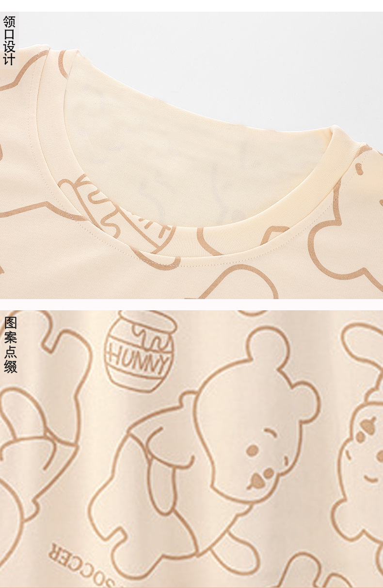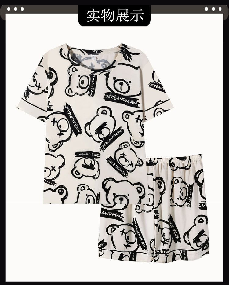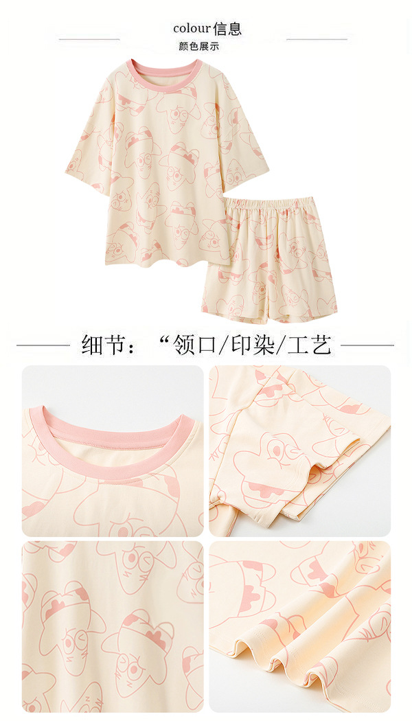 2025 여름 새로운 달콤한 만화 인쇄 짧은 소매 풀오버 라운드 넥 잠옷 여성 여름 얇은 캐주얼 착용 가능