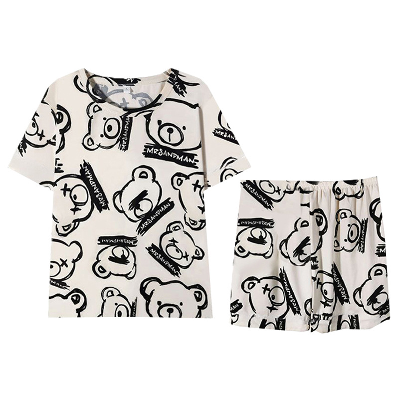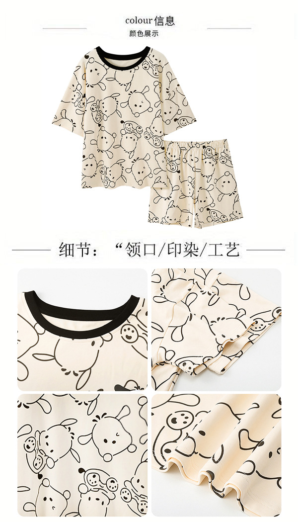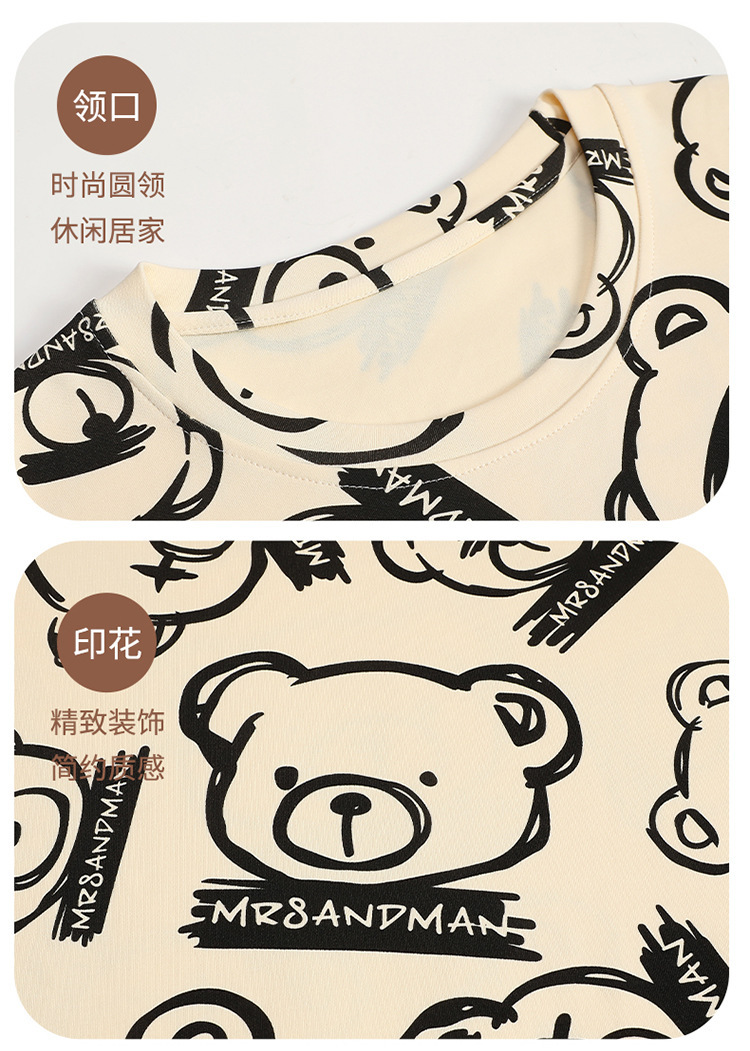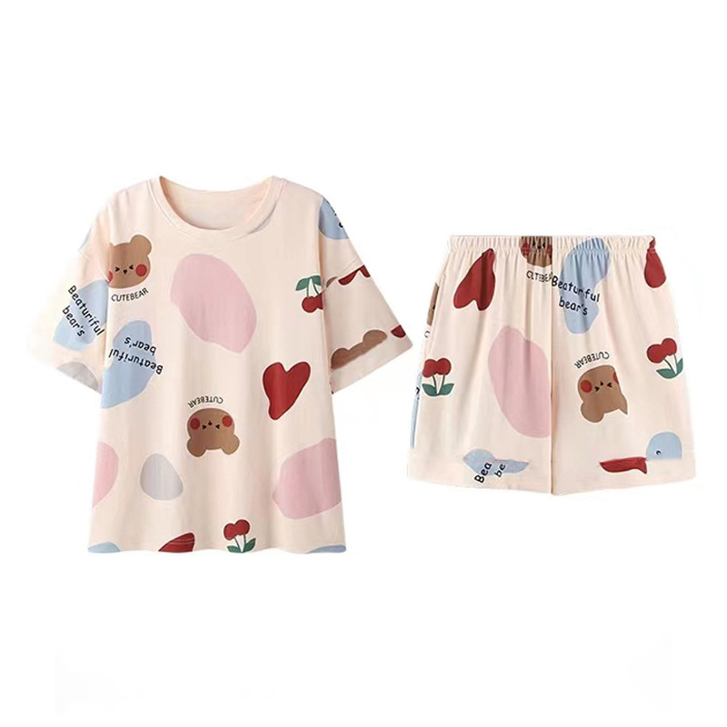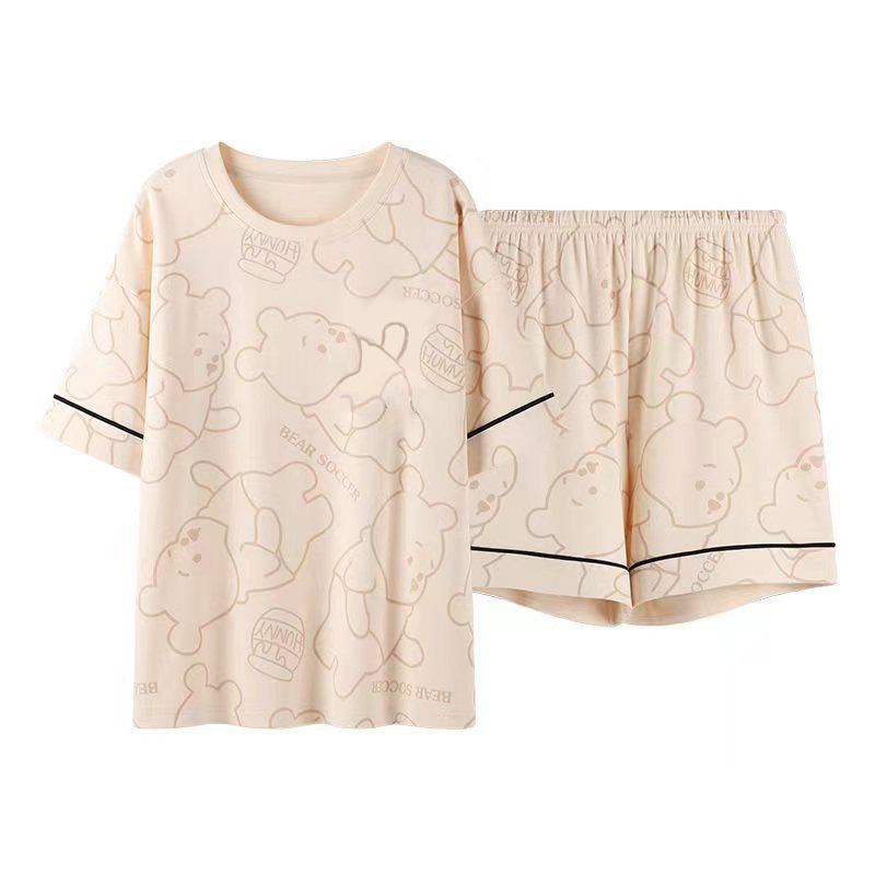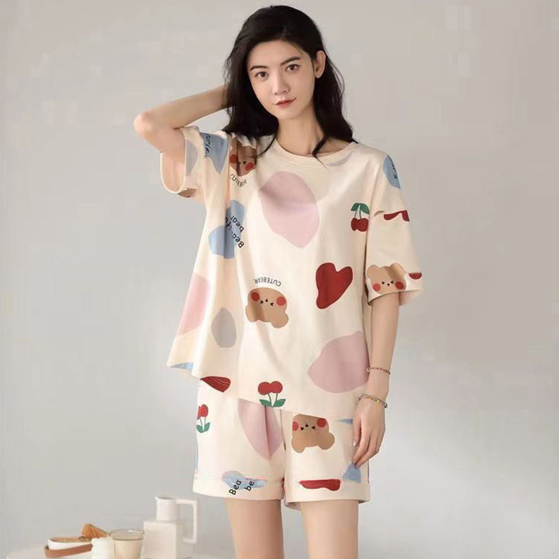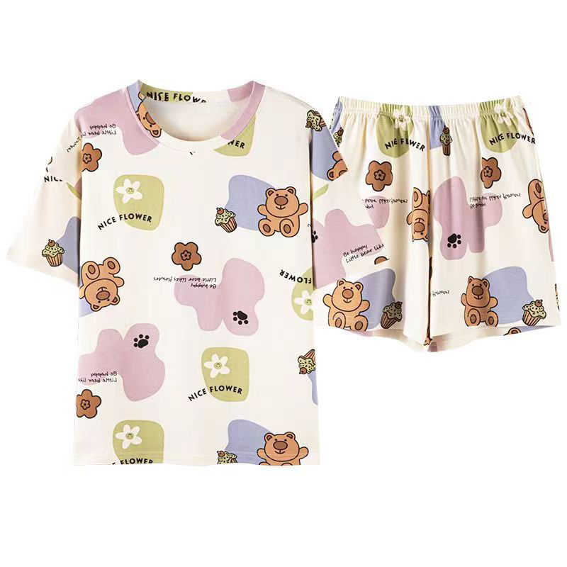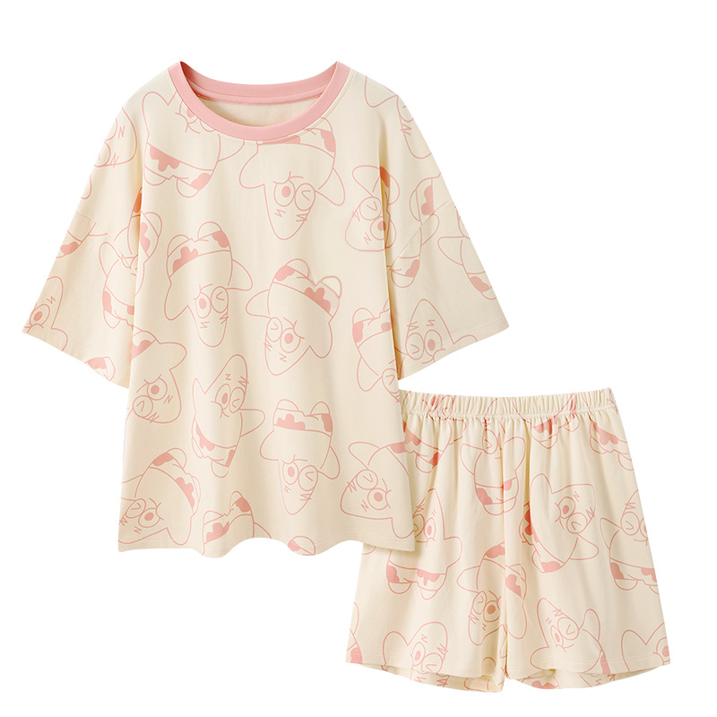 2025 여름 새로운 달콤한 만화 인쇄 짧은 소매 풀오버 라운드 넥 잠옷 여성 여름 얇은 캐주얼 착용 가능