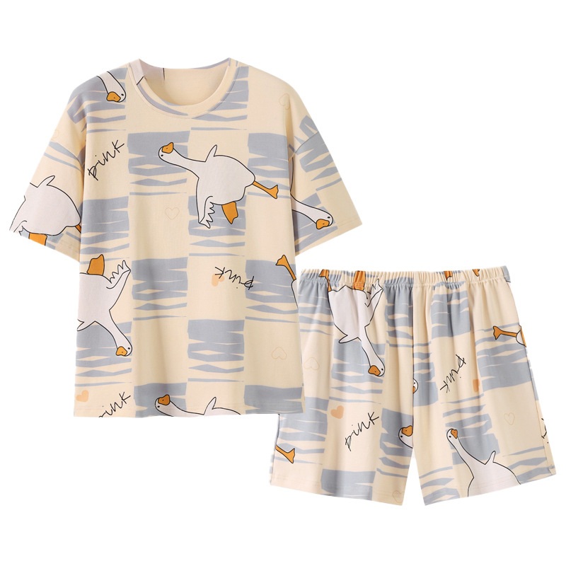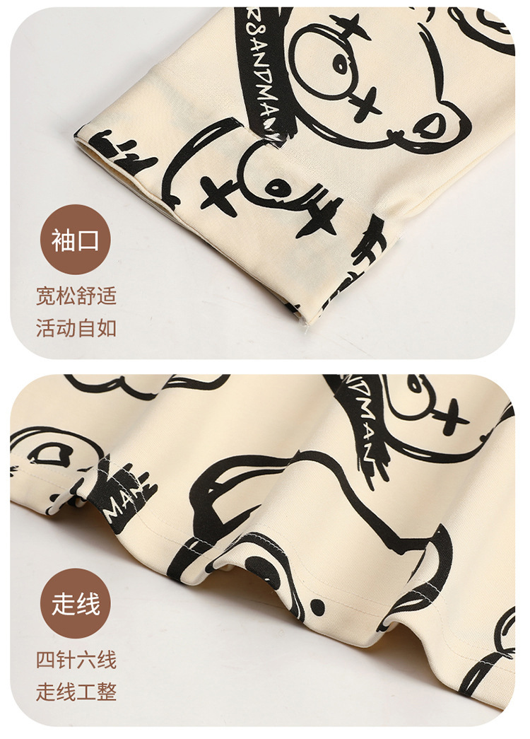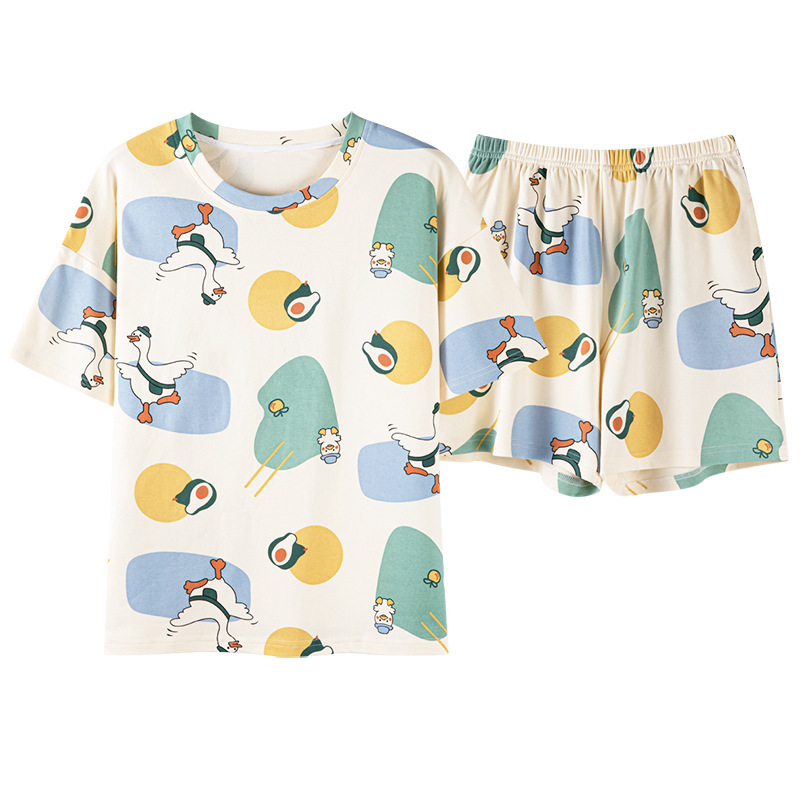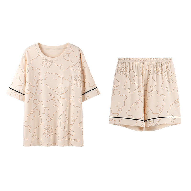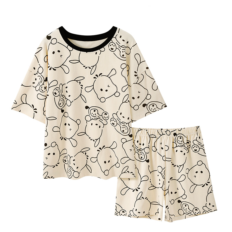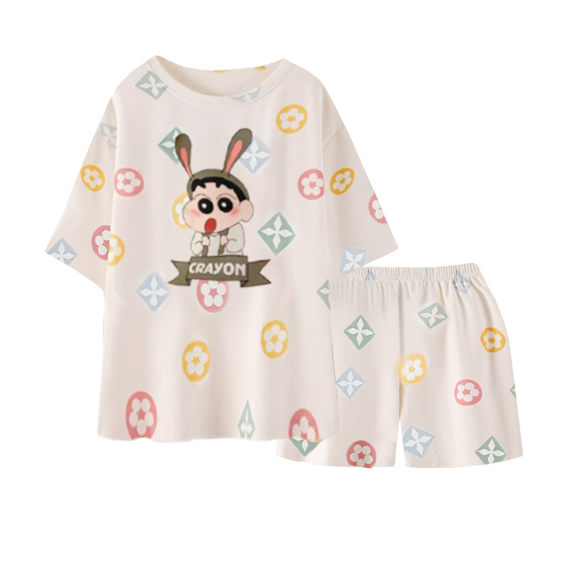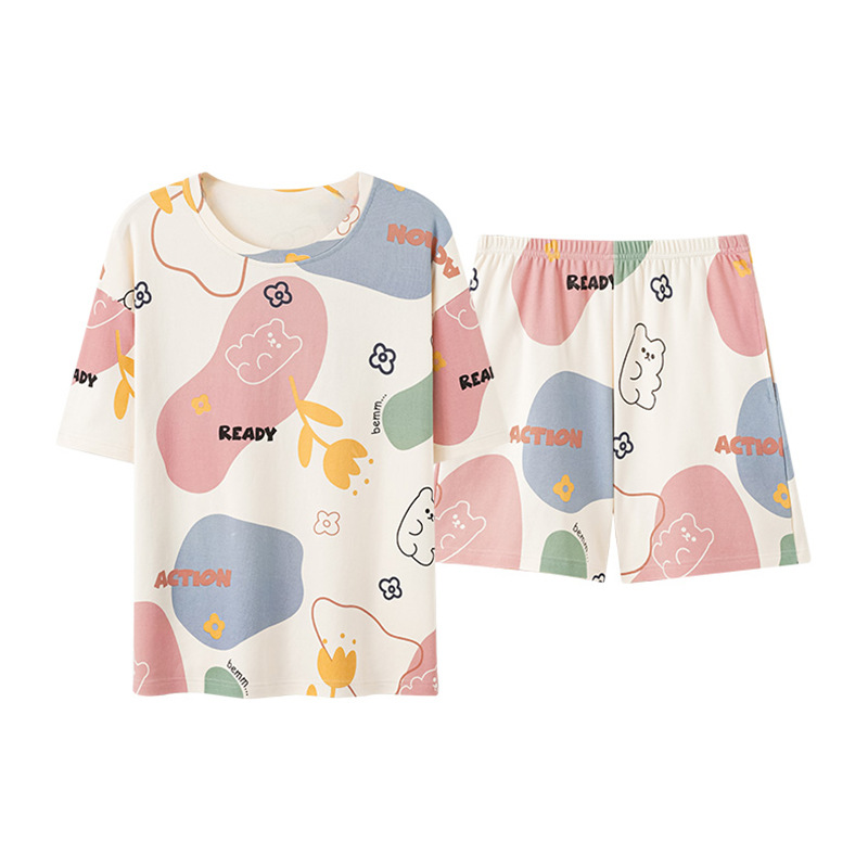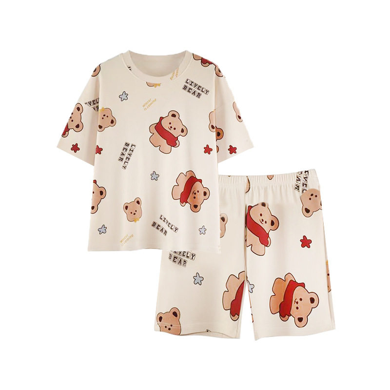 2025 여름 새로운 달콤한 만화 인쇄 짧은 소매 풀오버 라운드 넥 잠옷 여성 여름 얇은 캐주얼 착용 가능