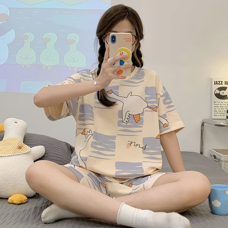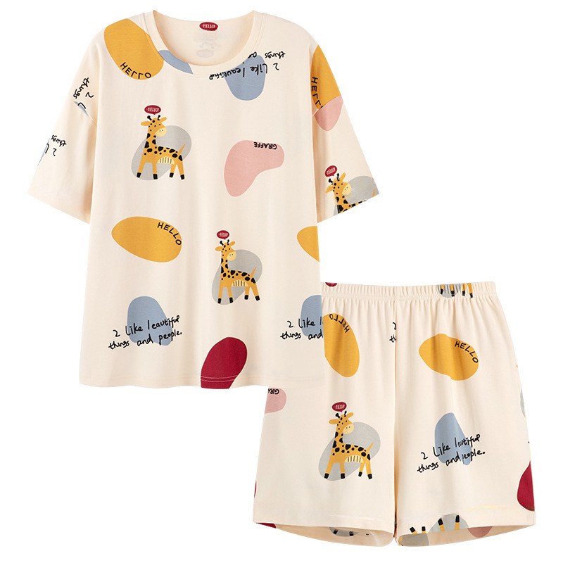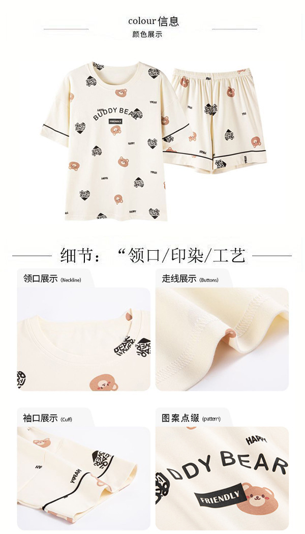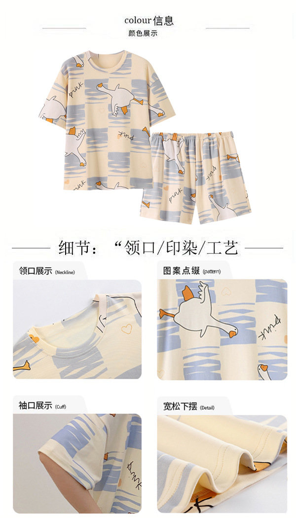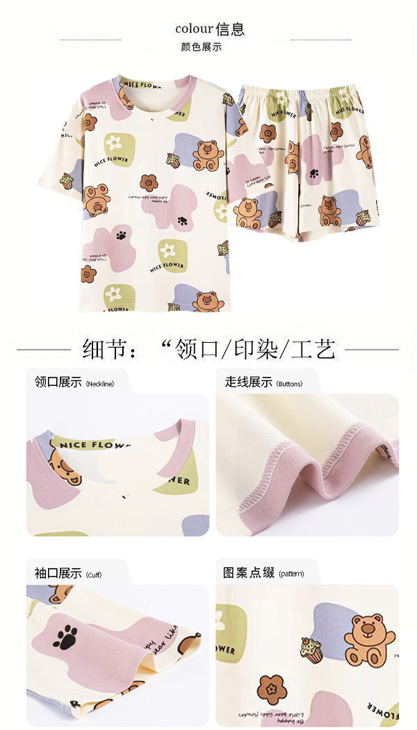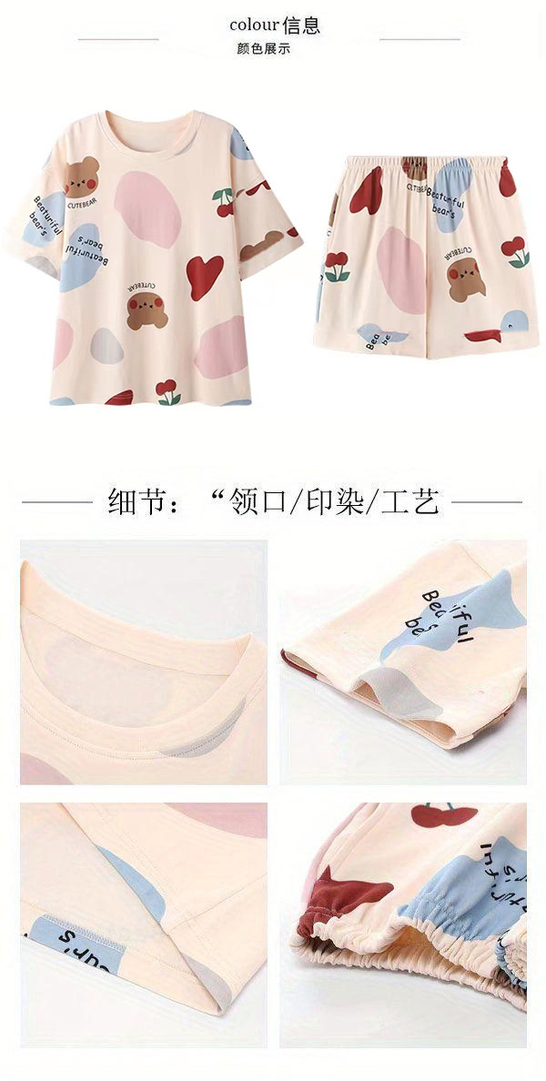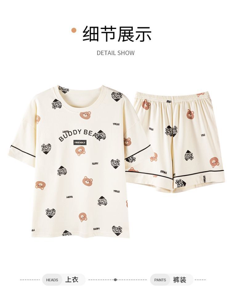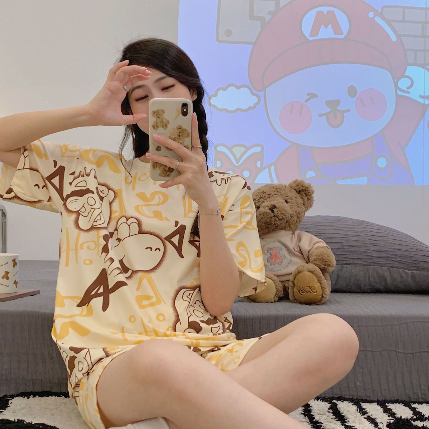 2025 여름 새로운 달콤한 만화 인쇄 짧은 소매 풀오버 라운드 넥 잠옷 여성 여름 얇은 캐주얼 착용 가능스토어 가기