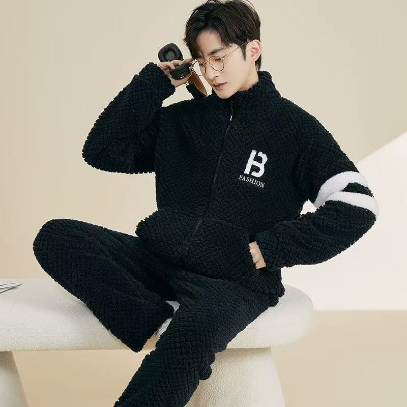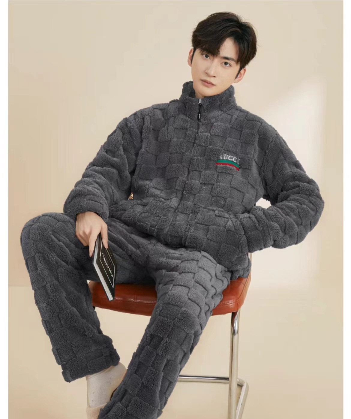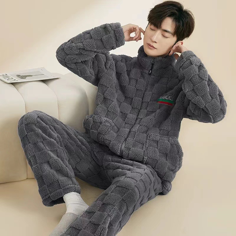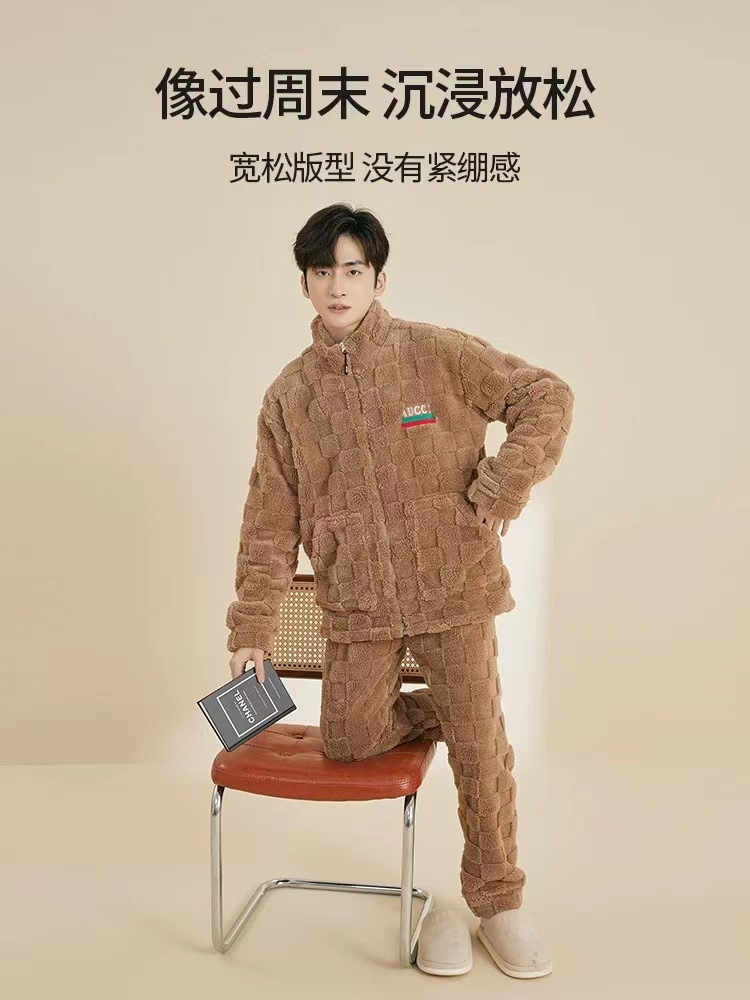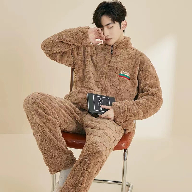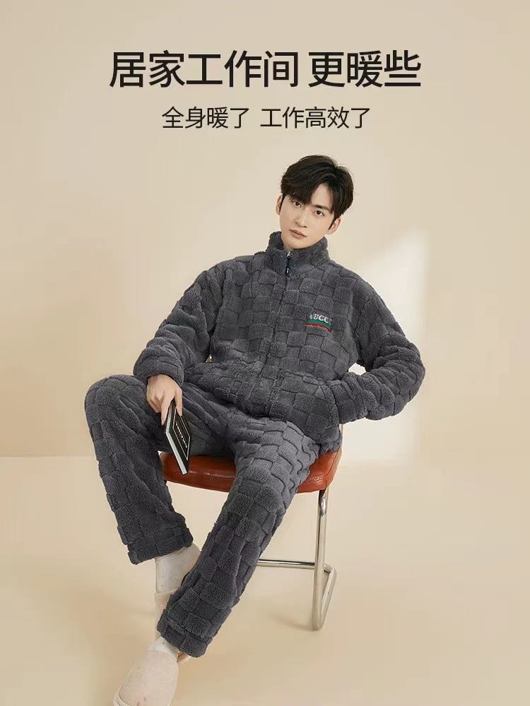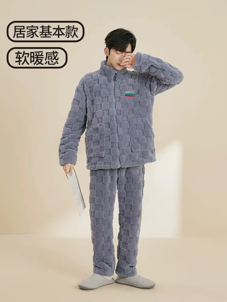 남성 잠옷 가을 2024 새로운 남성 겨울 하이 엔드 산호 벨벳 남성 벨벳 두꺼운 가을 가정 의류스토어 가기