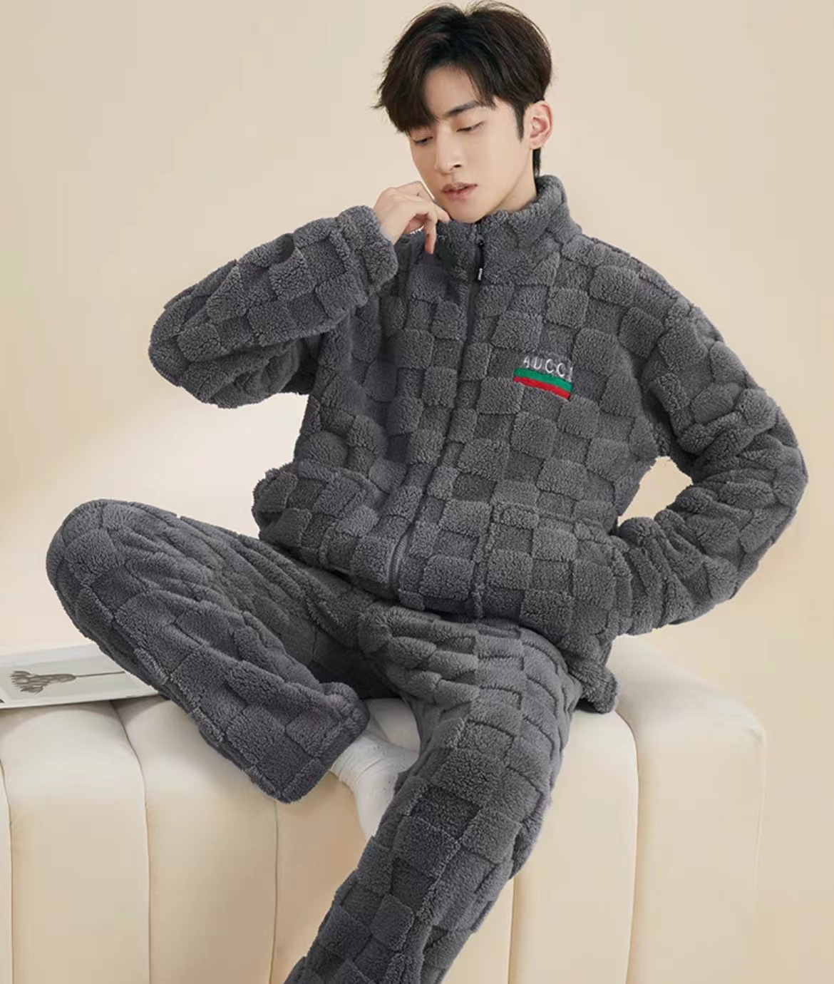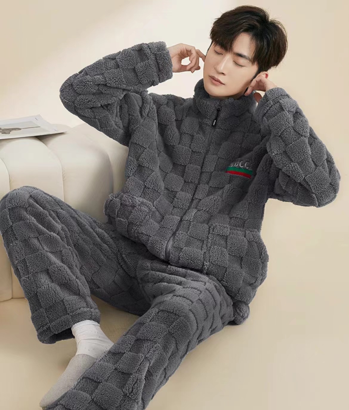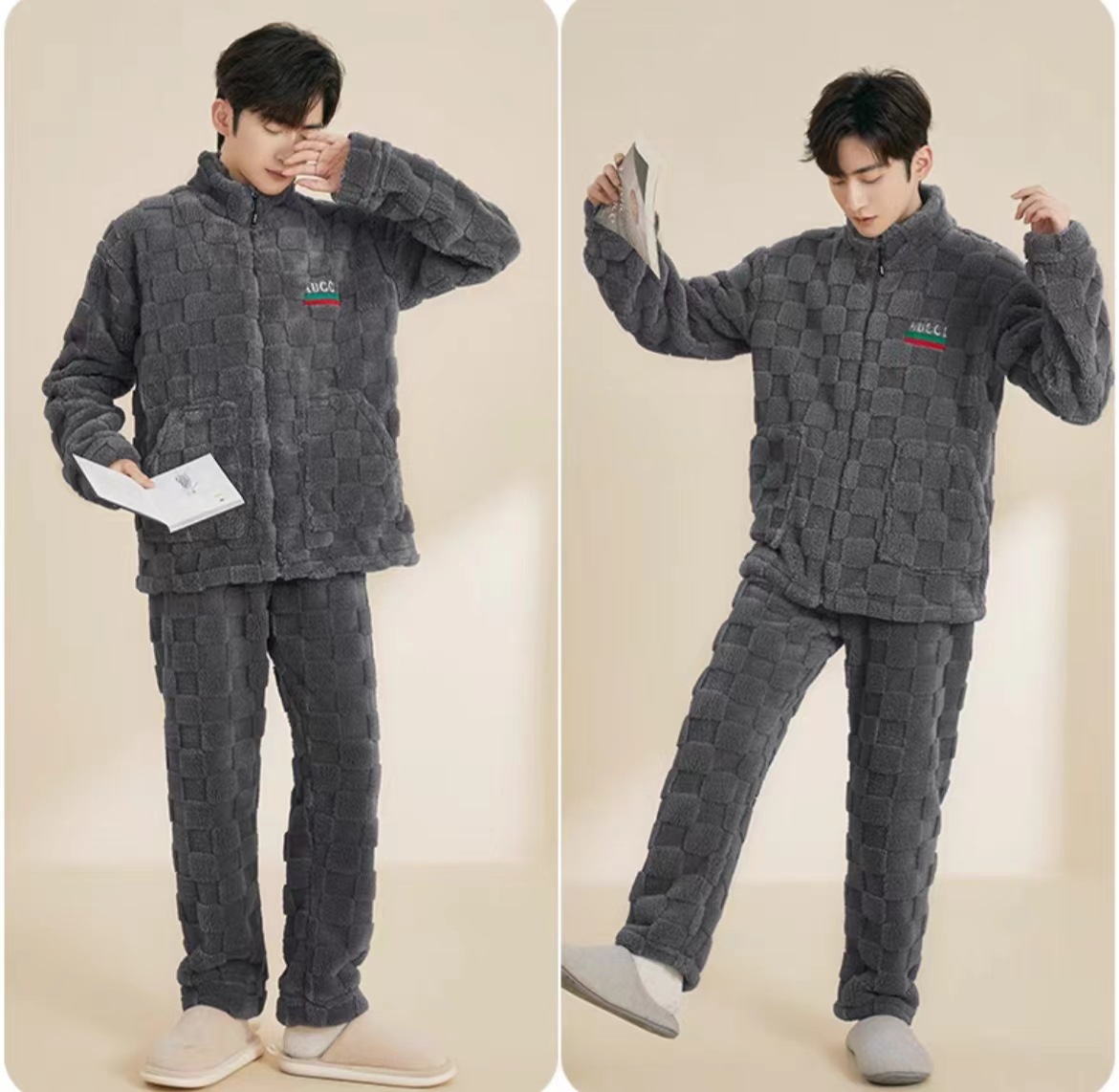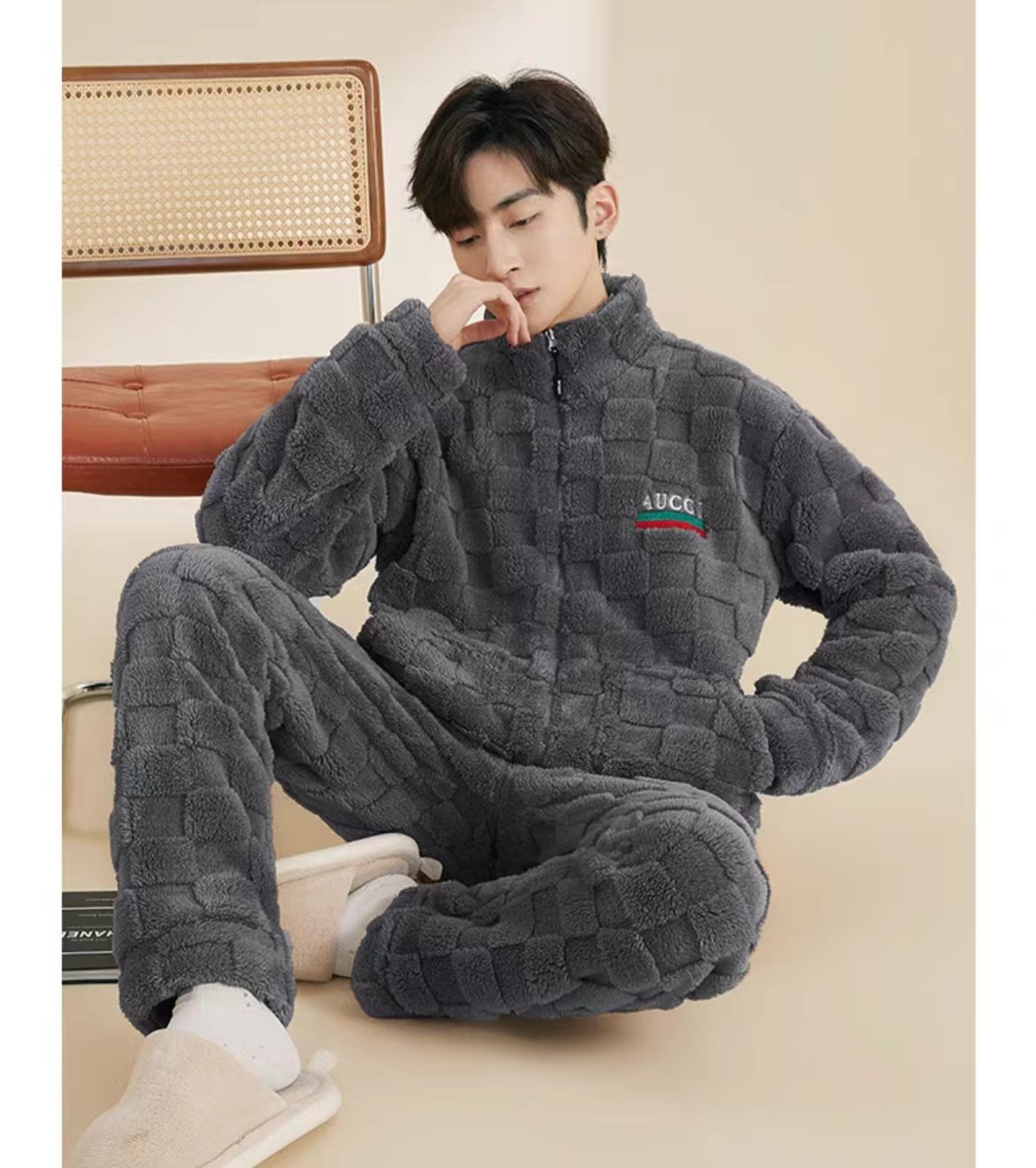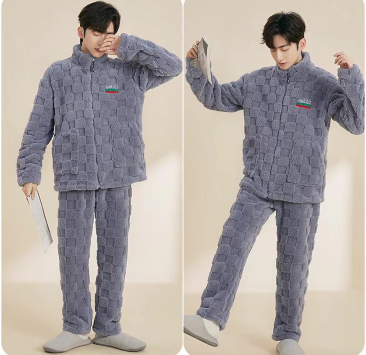 남성 잠옷 가을 2024 새로운 남성 겨울 하이 엔드 산호 벨벳 남성 벨벳 두꺼운 가을 가정 의류스토어 가기
