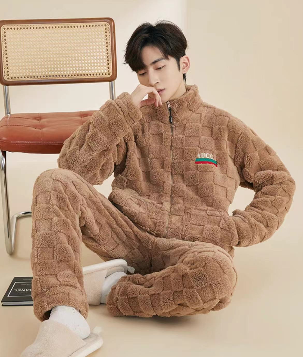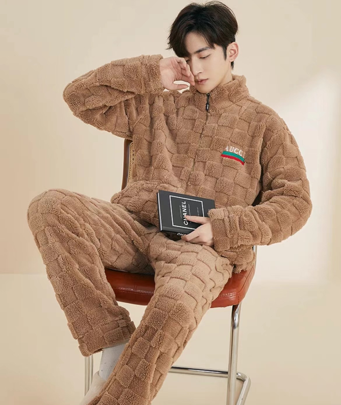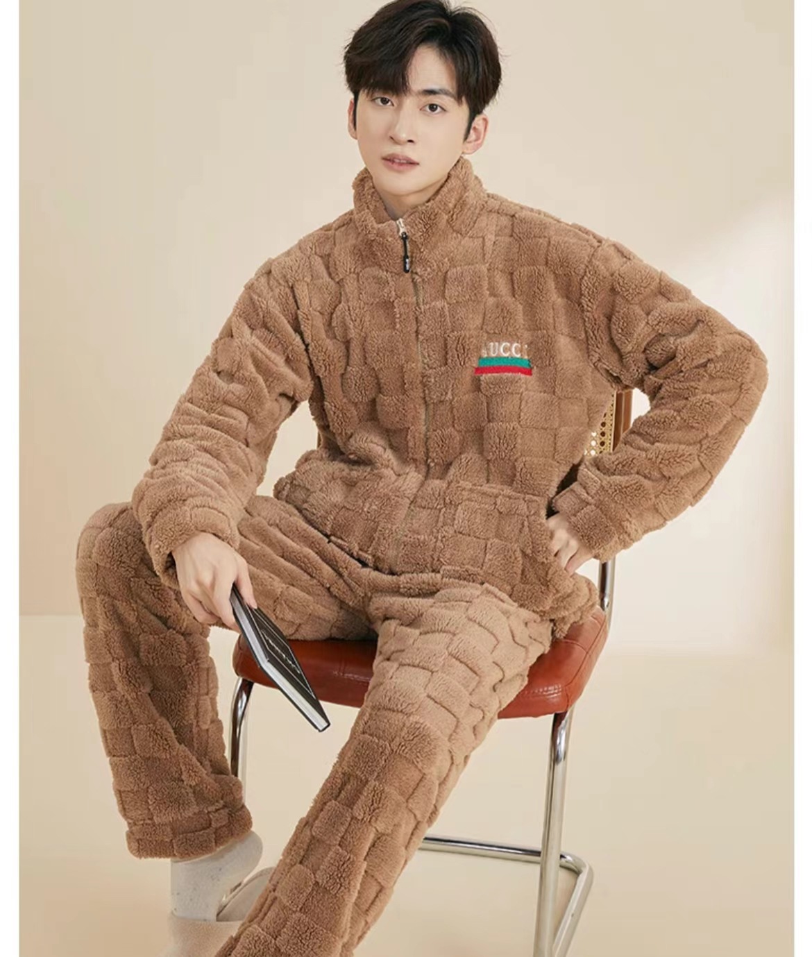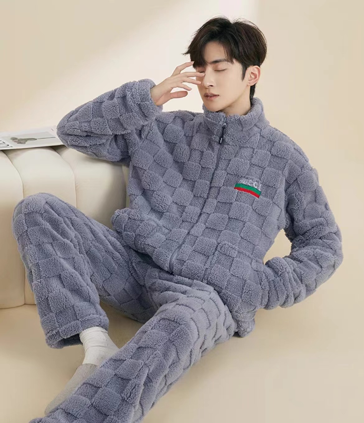 남성 잠옷 가을 2024 새로운 남성 겨울 하이 엔드 산호 벨벳 남성 벨벳 두꺼운 가을 가정 의류스토어 가기