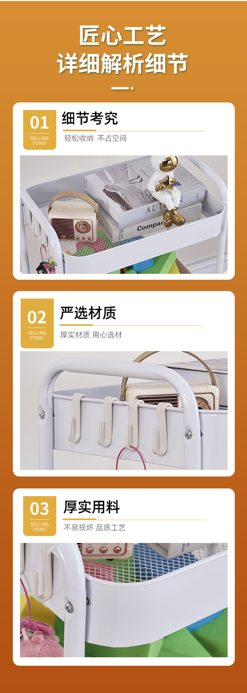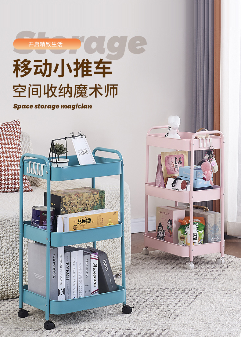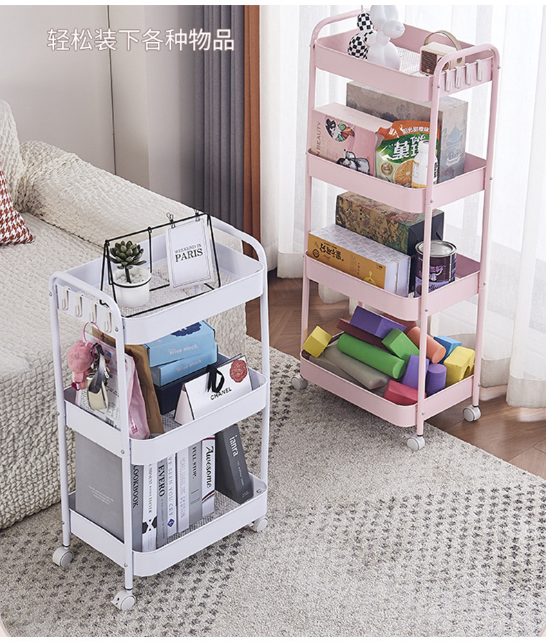 小推车套框置物架落地厨房浴室可移动零食多层卧室床头收纳储物架