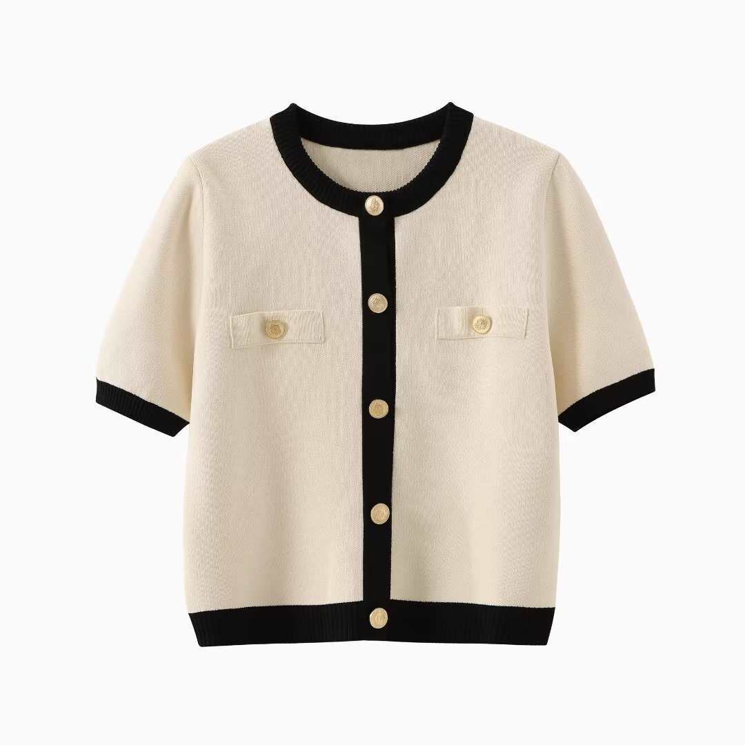 여름 니트 재킷 다목적 새로운 여성 의류 크로스 보더 유럽과 미국 스타일 캐주얼 반팔 패션스토어 가기