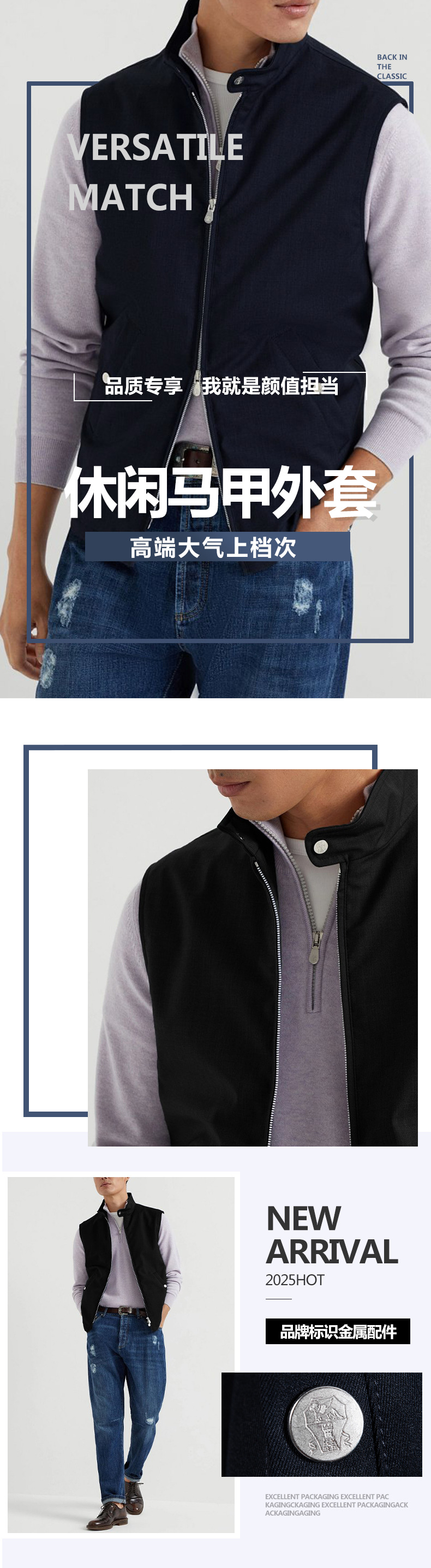 BC 동일 스타일 남성용 신축성 조끼 재킷 면+스판덱스 고급 금속 버클 심플하고 멋스러운 디자인 58161
