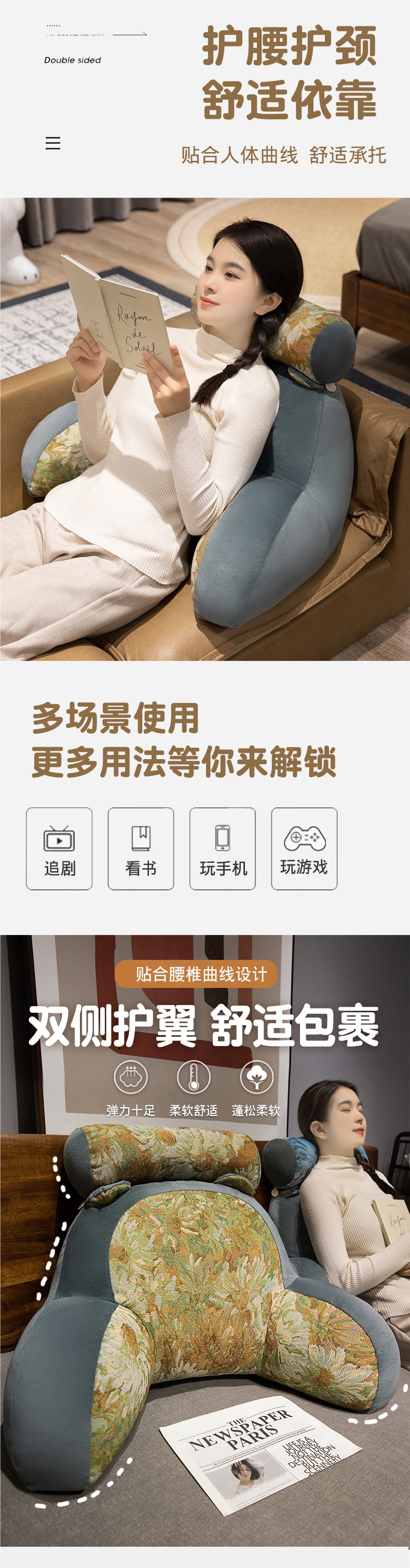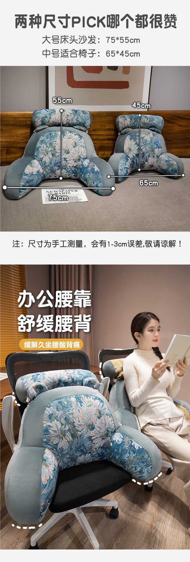 침대 옆 부드러운 대형 등받이 침대 어린이 침대 쿠션 독서 허리 쿠션 소파 베개 기숙사 학생 베개