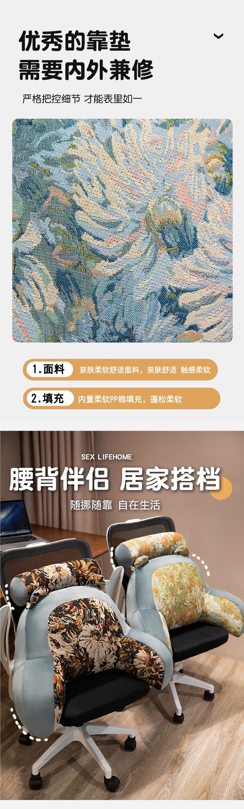 • [의자 추천] 미디엄 쿠션 + 머리받침 (60* 45cm 독립형 내부 라이너는 탈부착 및 세탁 가능)