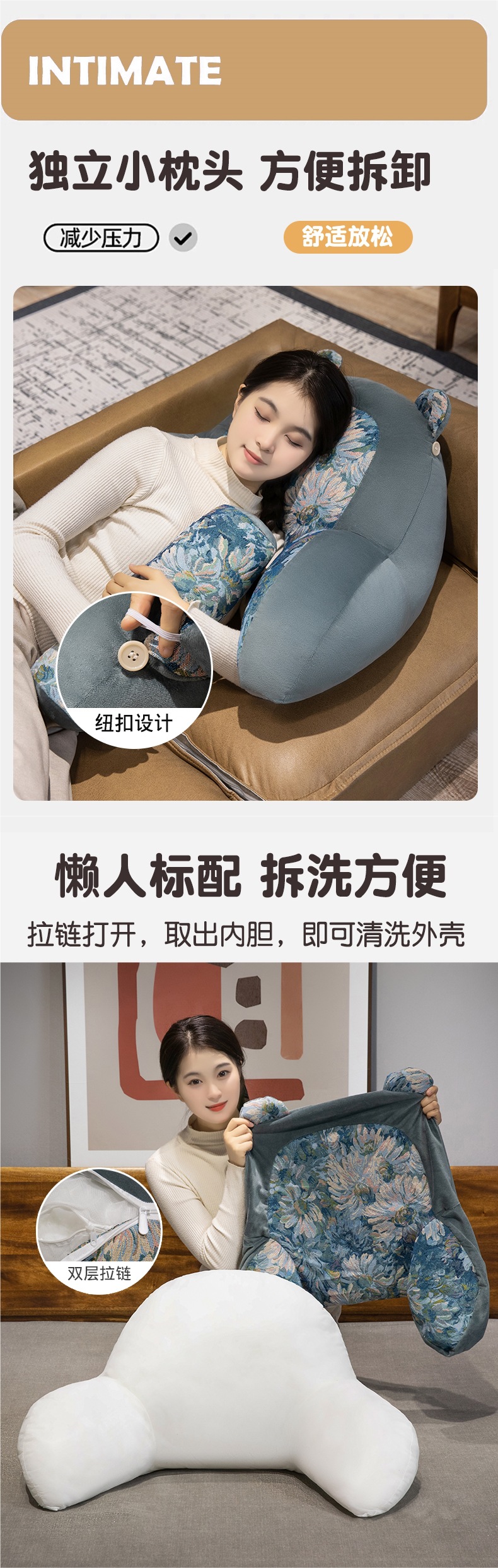 • [소파 추천] 대형 쿠션 + 머리받침 (70* 50cm 독립형 내부 라이너는 탈부착 및 세탁 가능)
