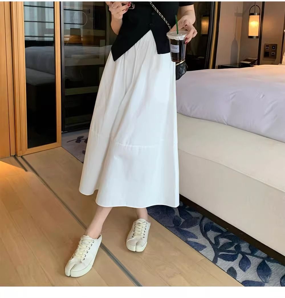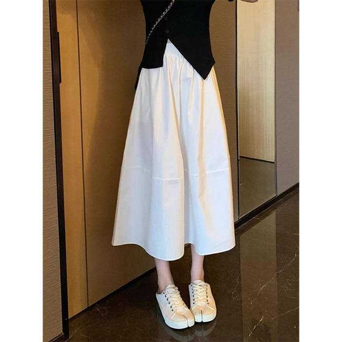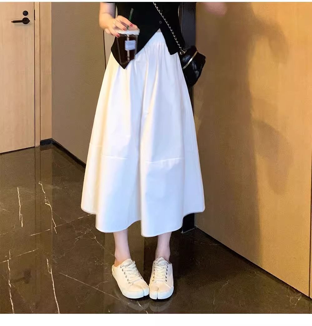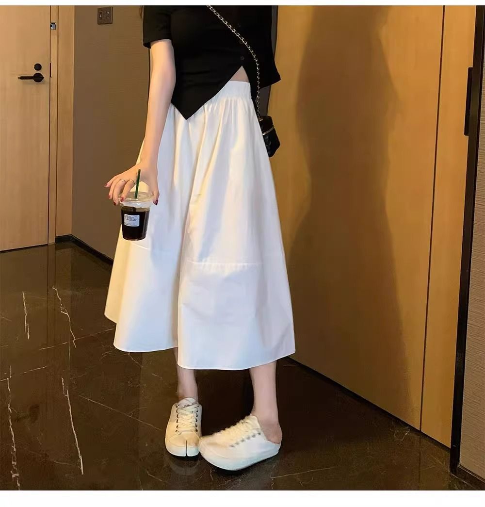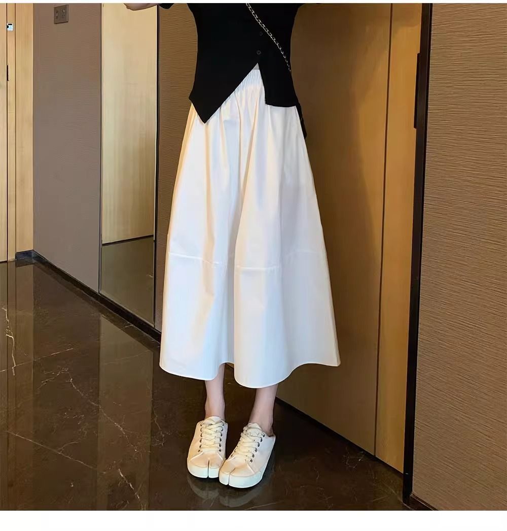 프렌치 화이트 스커트 여름 신상 하이웨이스트 에이라인 스커트 쁘띠 중간길이 슬리밍 힙커버 우산 스커트