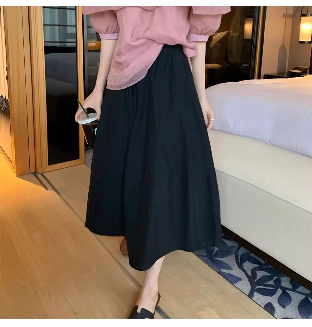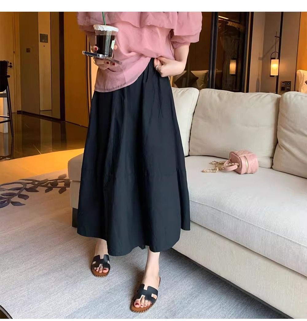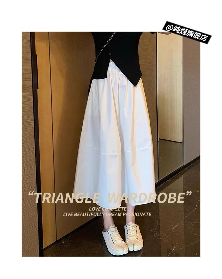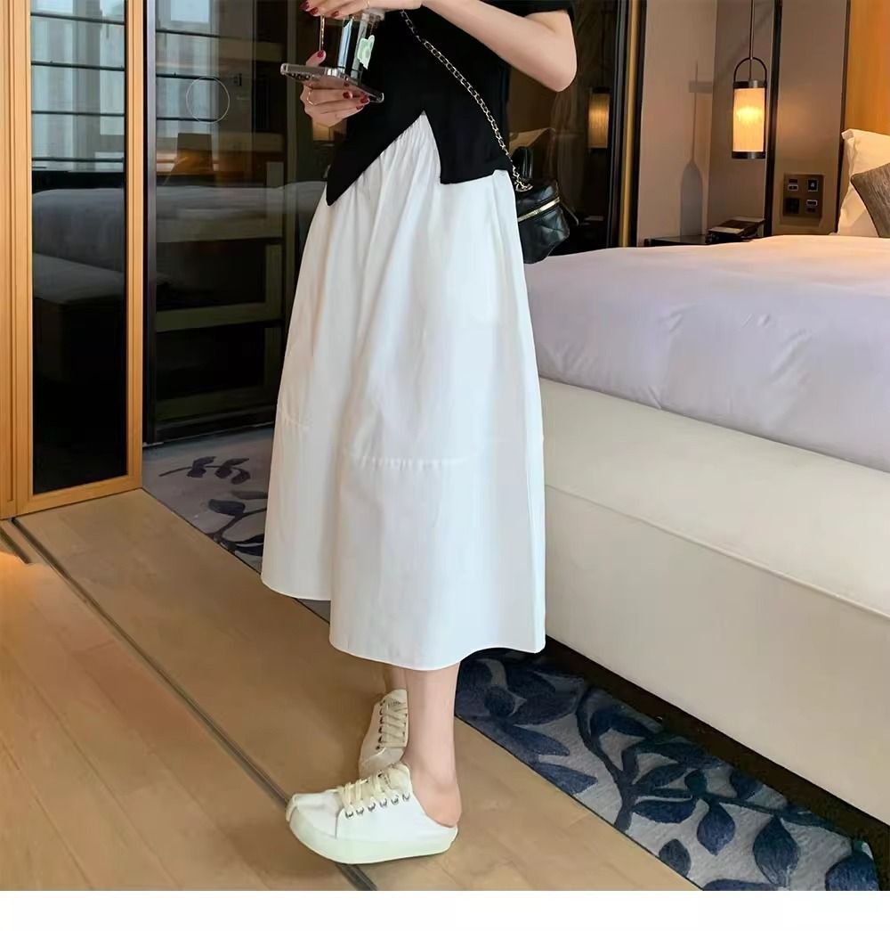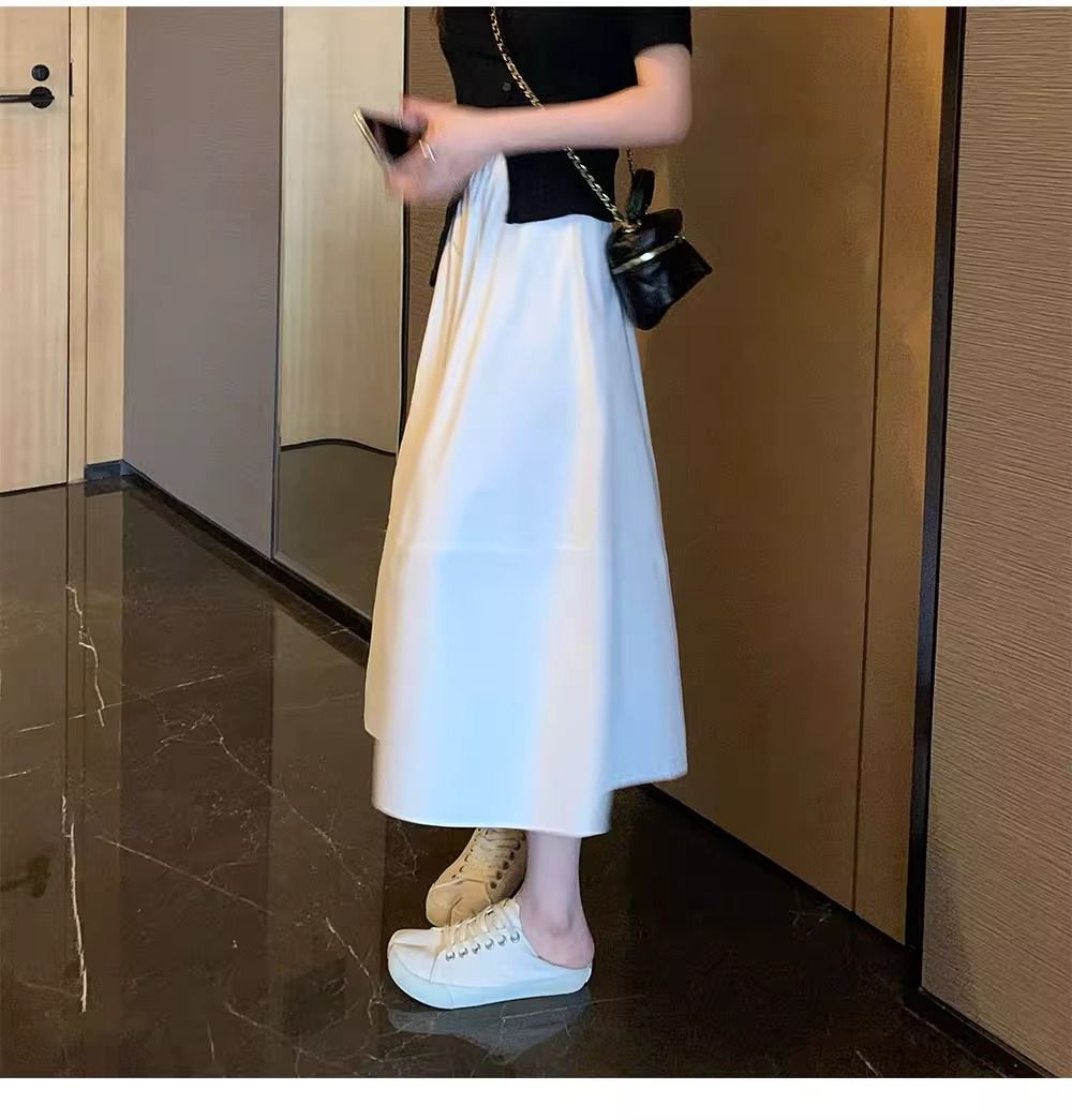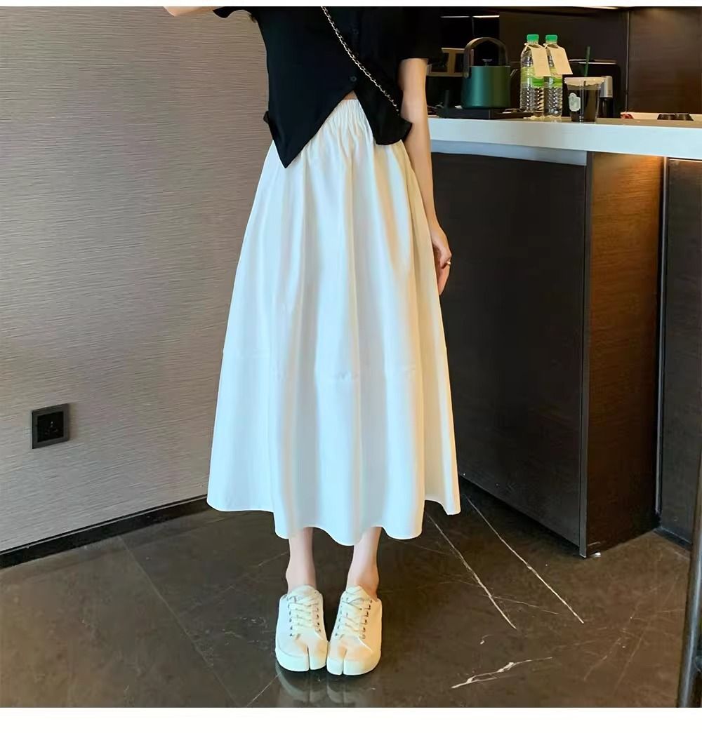 프렌치 화이트 스커트 여름 신상 하이웨이스트 에이라인 스커트 쁘띠 중간길이 슬리밍 힙커버 우산 스커트
