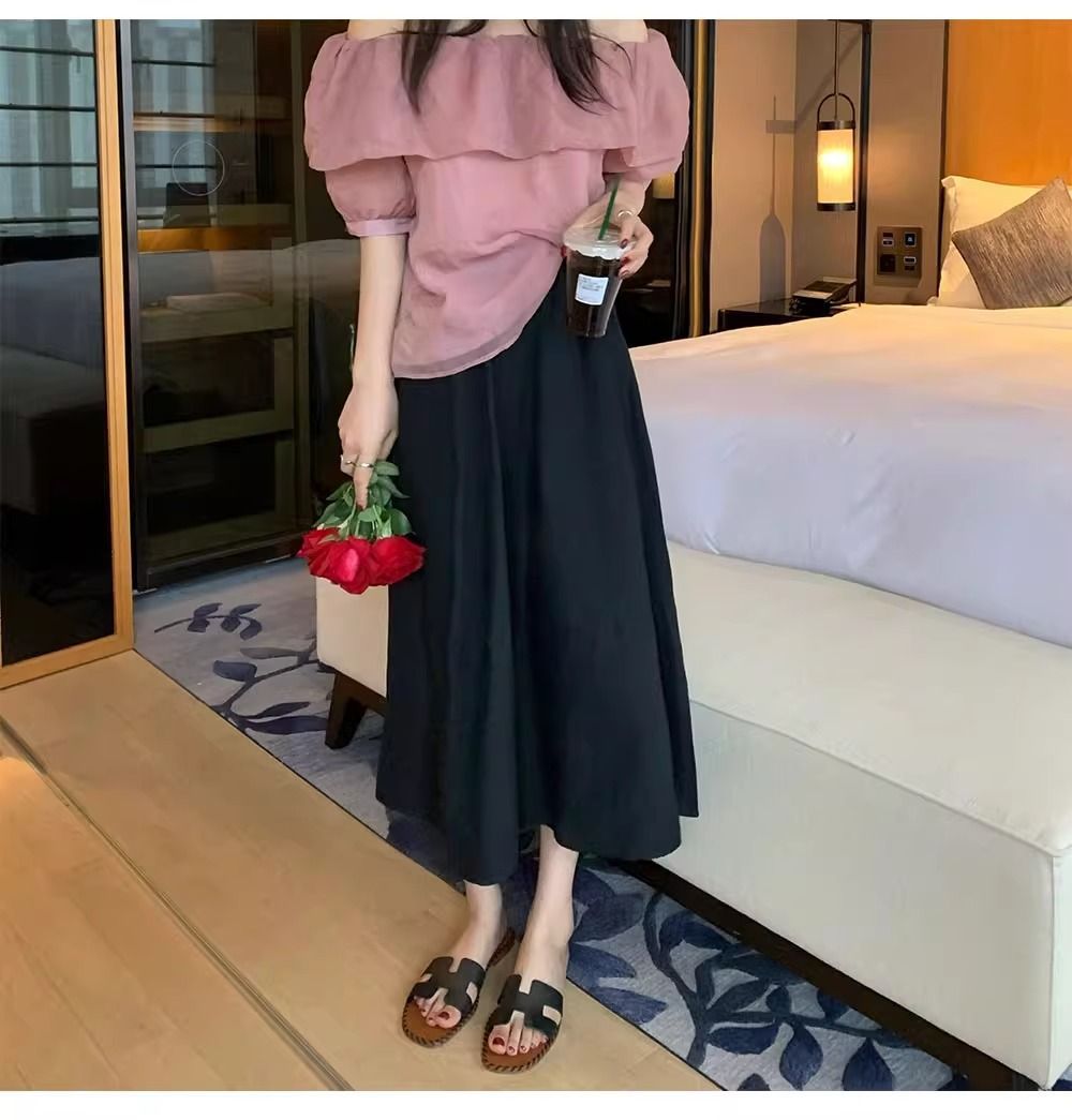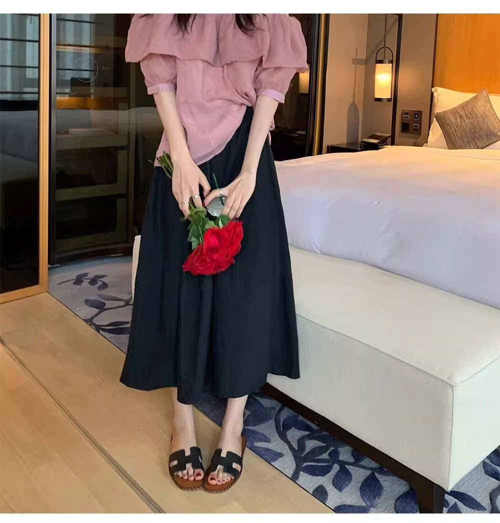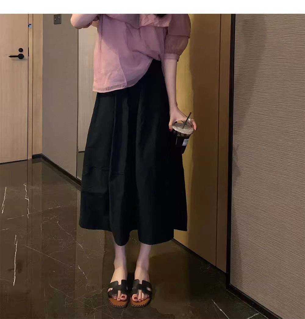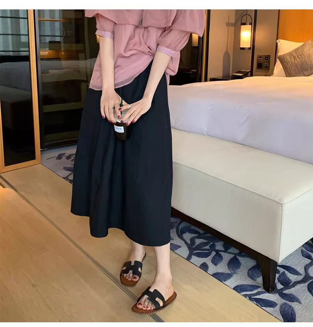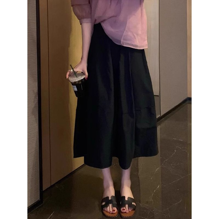 프렌치 화이트 스커트 여름 신상 하이웨이스트 에이라인 스커트 쁘띠 중간길이 슬리밍 힙커버 우산 스커트