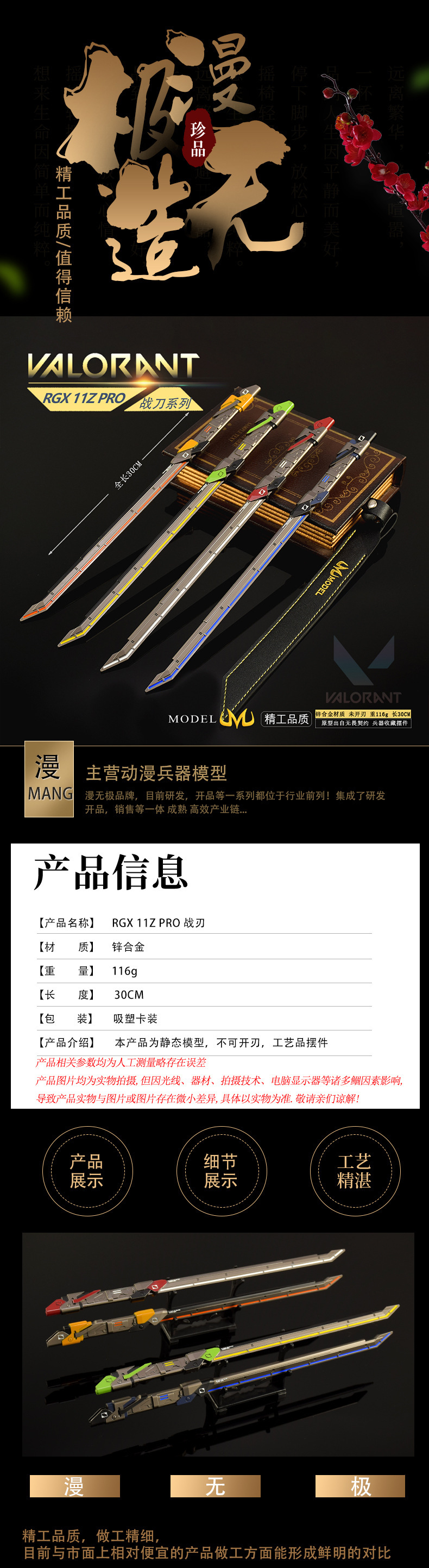 Valorant 게임 주변 무기 모델 RGX 11Z PRO 그래픽 카드 스트레이트 나이프 가죽 케이스 버전 30CM 무기스토어 가기