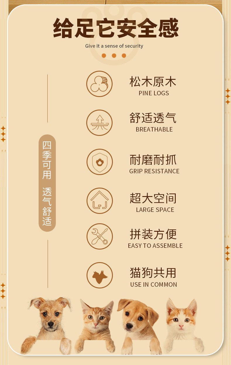 개집 실내 단단한 나무 개집 케이지 집 중소형 개 사계절 사용 가능 분리 및 세척 가능한 고양이 개집 애완 동물 침대 Bichon Frize
