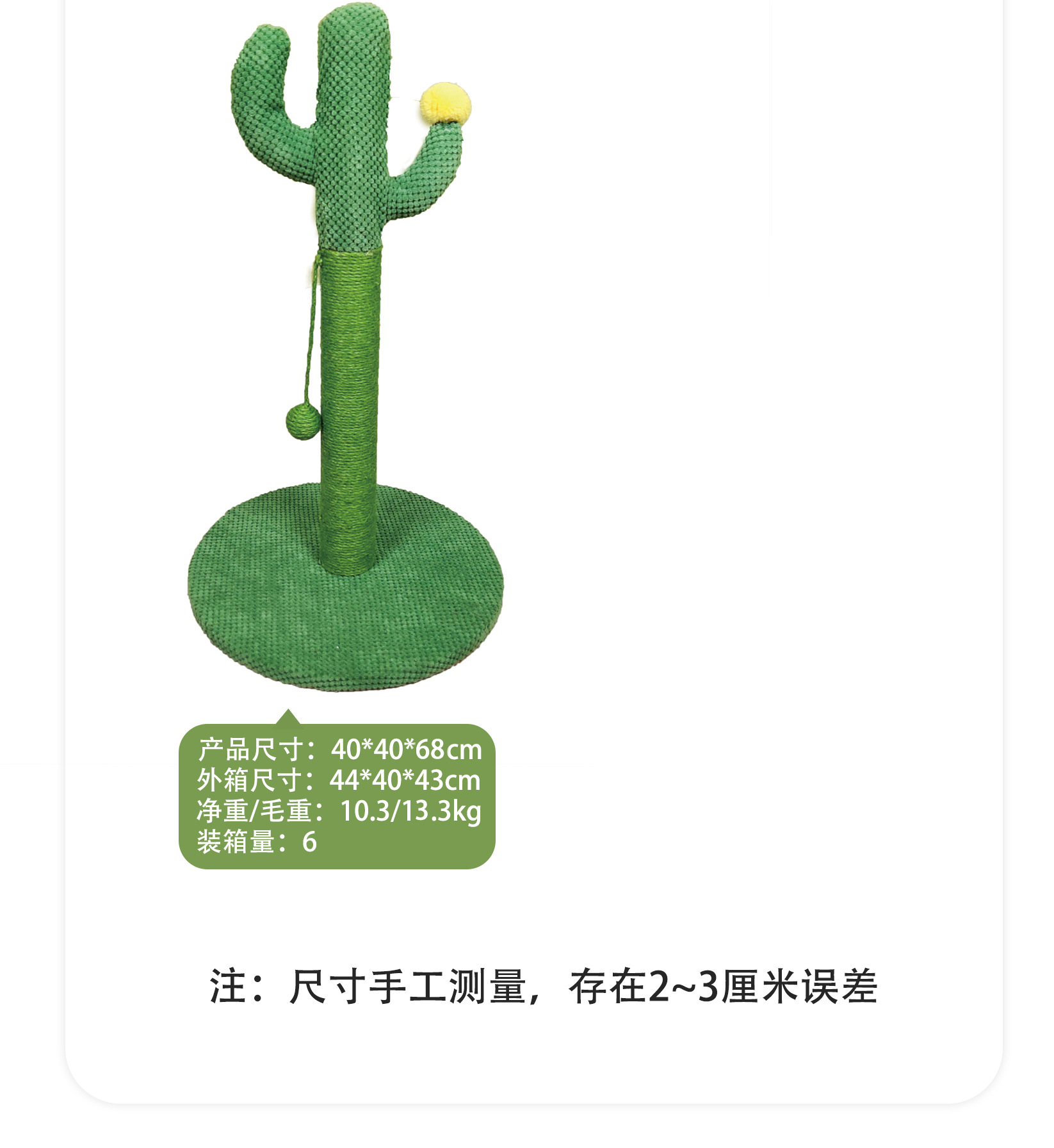 제조업체 시뮬레이션 선인장 고양이 클라이밍 프레임 대마 로프 고양이 스크래치 컬럼 스크래치 방지 및 안정적인 고양이 교수형 공 장난감 스크래치 컬럼스토어 가기