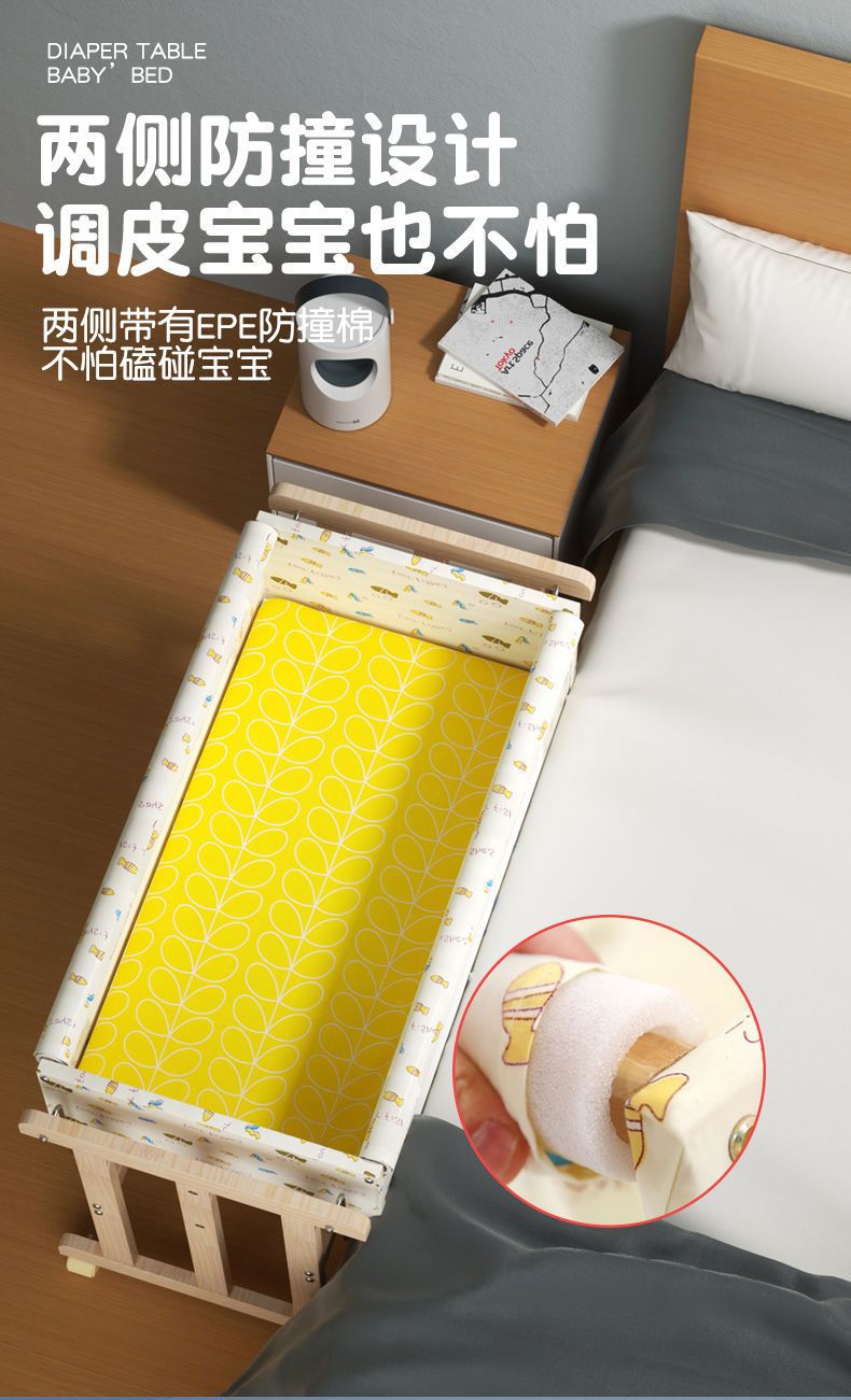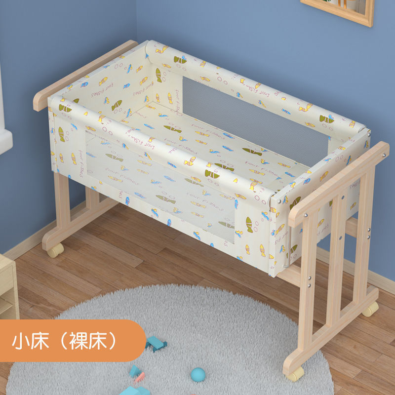 Ruiying 단단한 나무 유아용 침대 요람 침대 BB 침대 아기 침대 작은 요람 I자형 요람 모기장 포함 평행 요람
