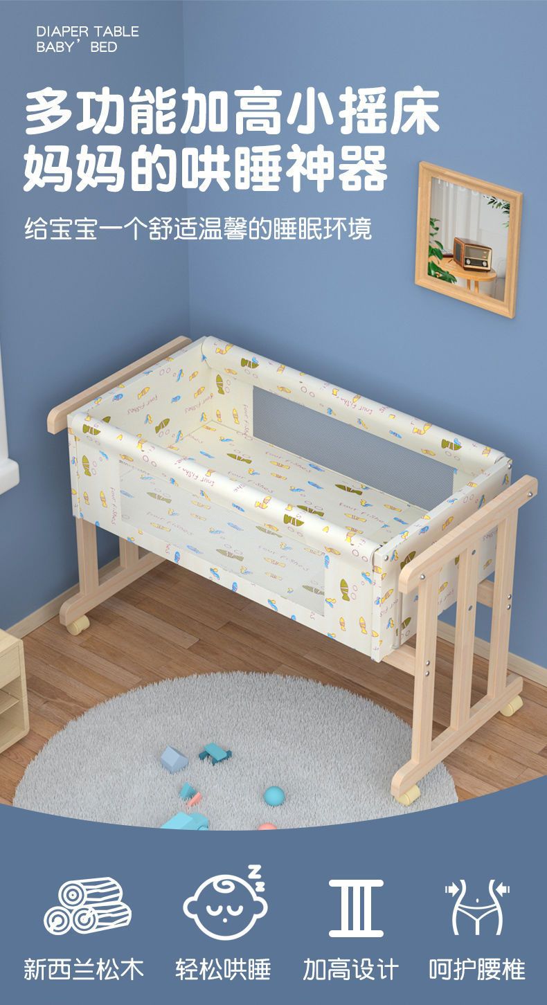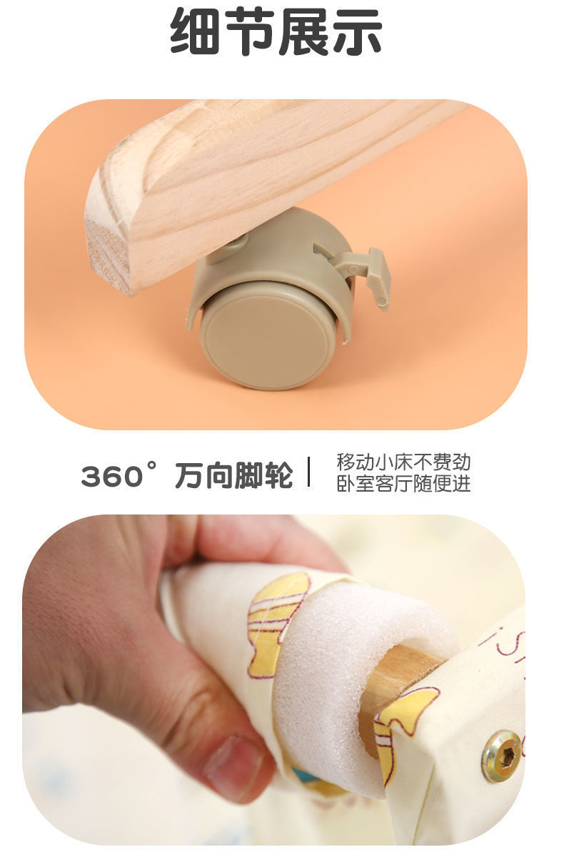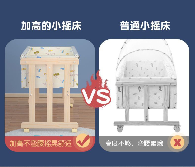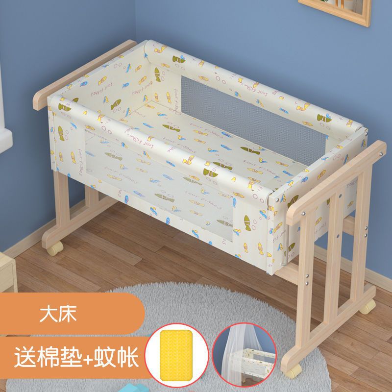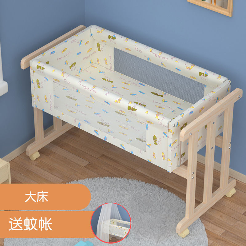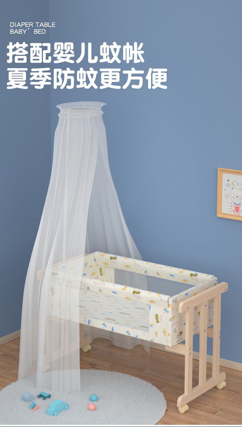 Ruiying 단단한 나무 유아용 침대 요람 침대 BB 침대 아기 침대 작은 요람 I자형 요람 모기장 포함 평행 요람스토어 가기