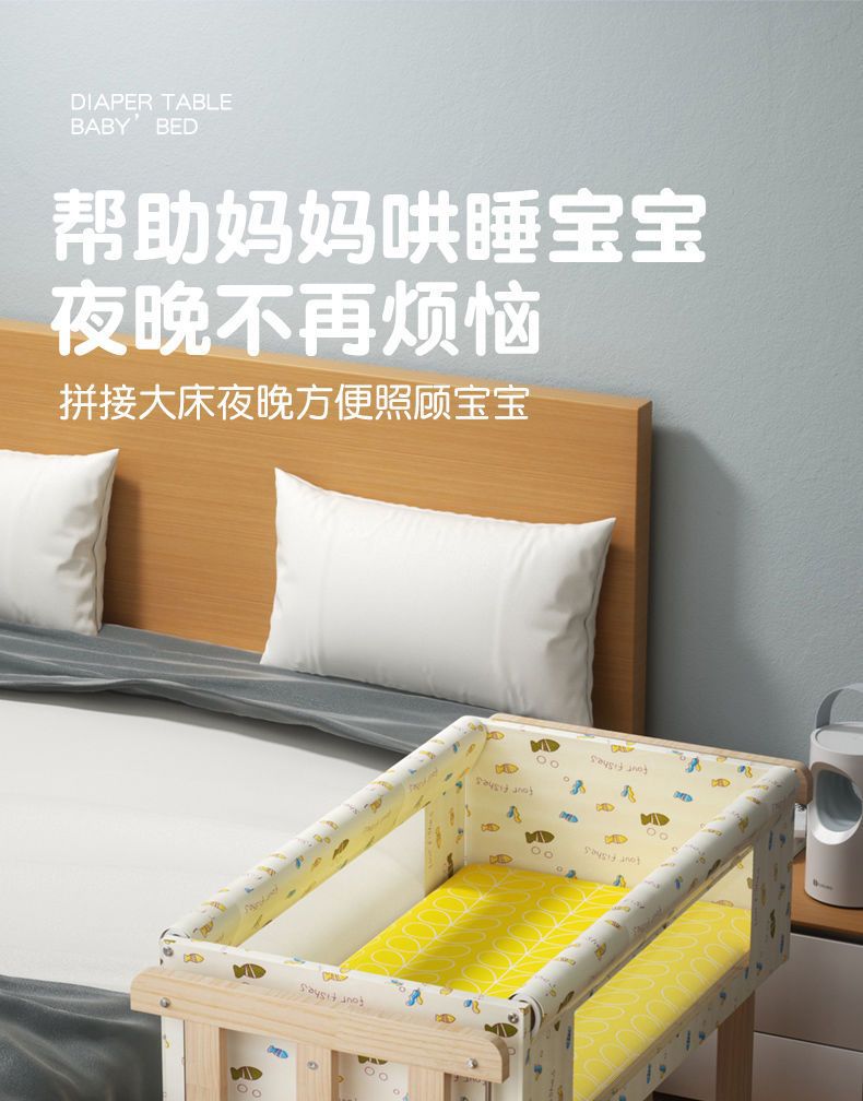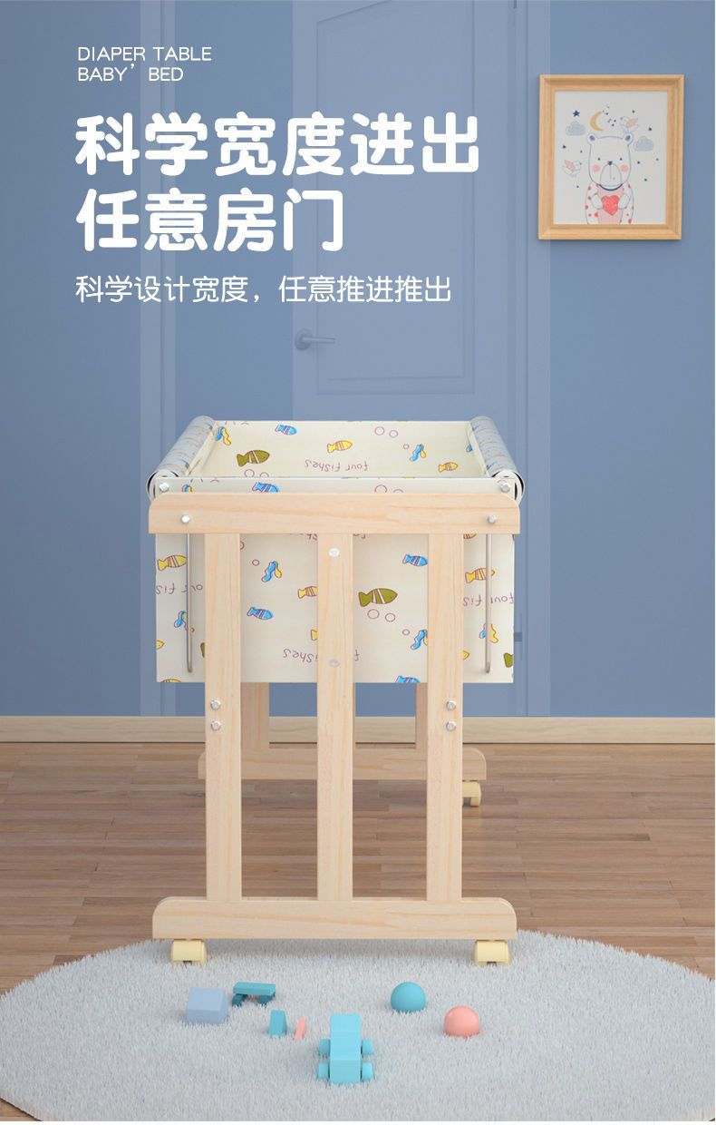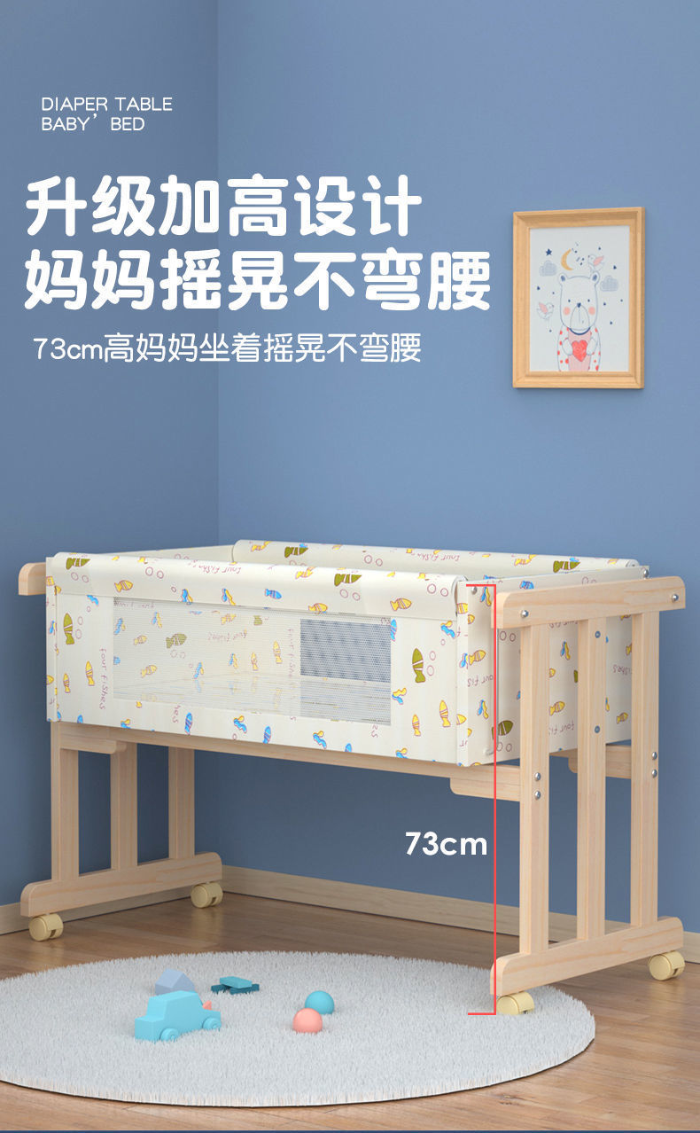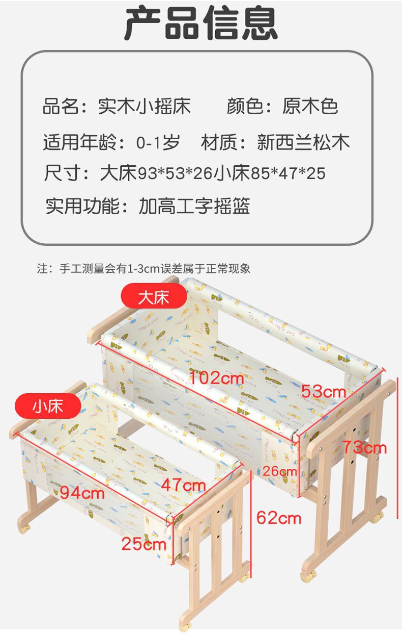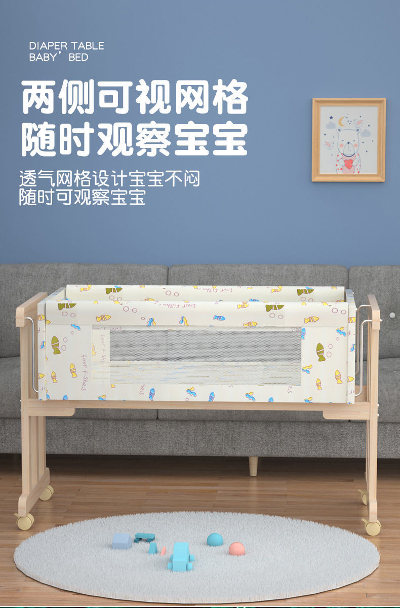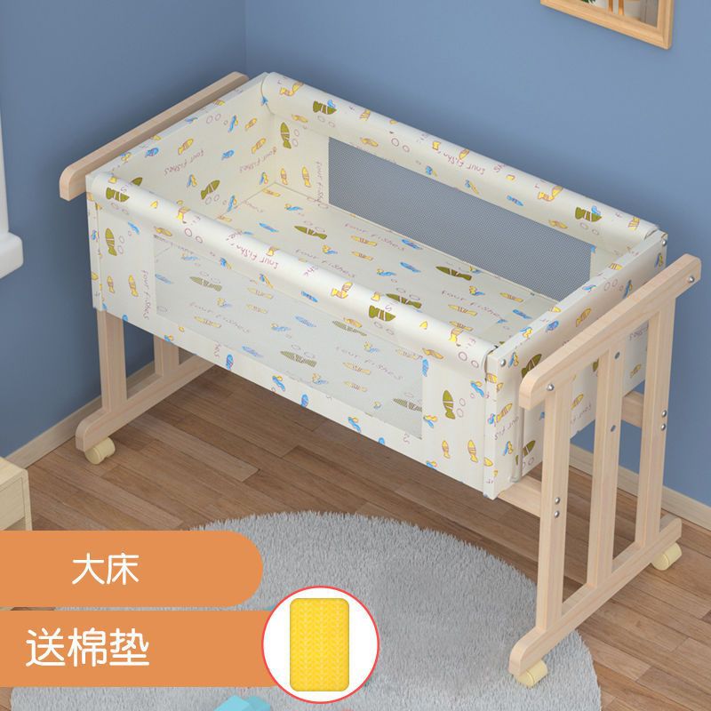 Ruiying 단단한 나무 유아용 침대 요람 침대 BB 침대 아기 침대 작은 요람 I자형 요람 모기장 포함 평행 요람스토어 가기