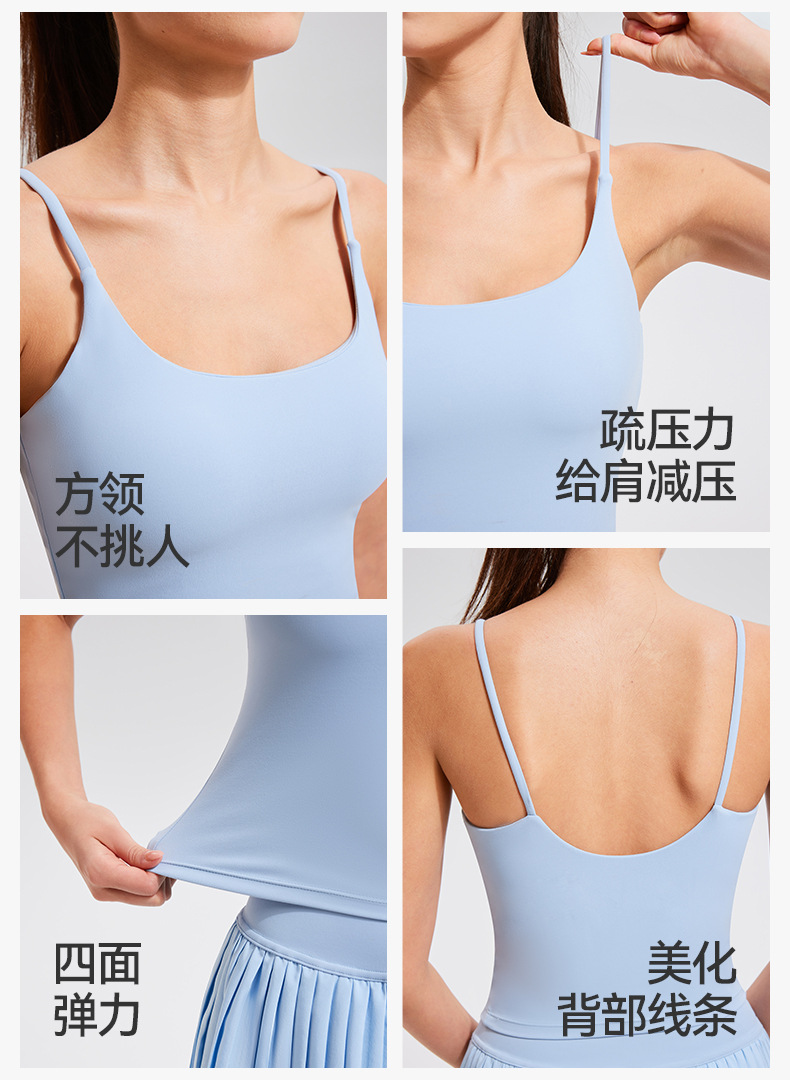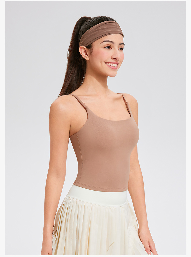 크로스보더 라이크라 쉐이핑 무제한 요가탑 여성용 가슴패드 내장 고탄력 누드느낌 아우터웨어 스포츠 통기성 속건스토어 가기