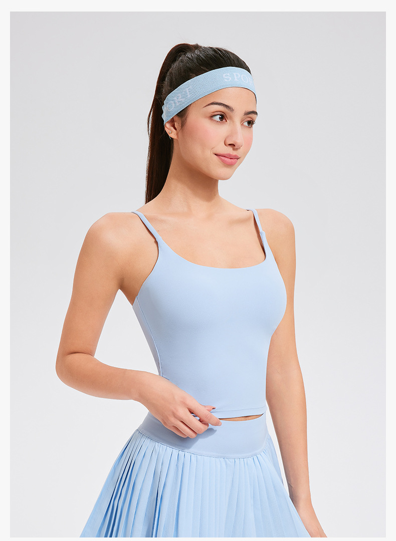 크로스보더 라이크라 쉐이핑 무제한 요가탑 여성용 가슴패드 내장 고탄력 누드느낌 아우터웨어 스포츠 통기성 속건