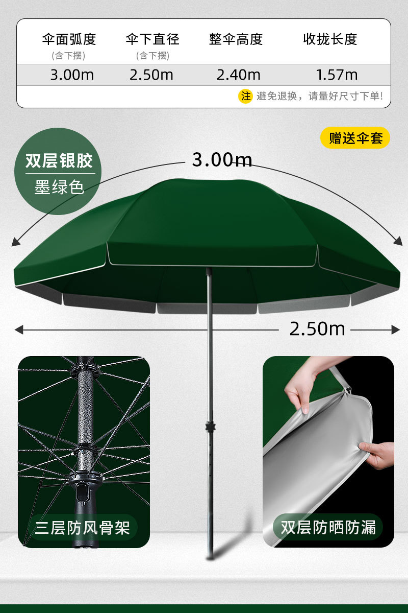 • [이중우산천 + 삼중우산걸이] 3.0m 대형 짙은 녹색 - 베이스 없음