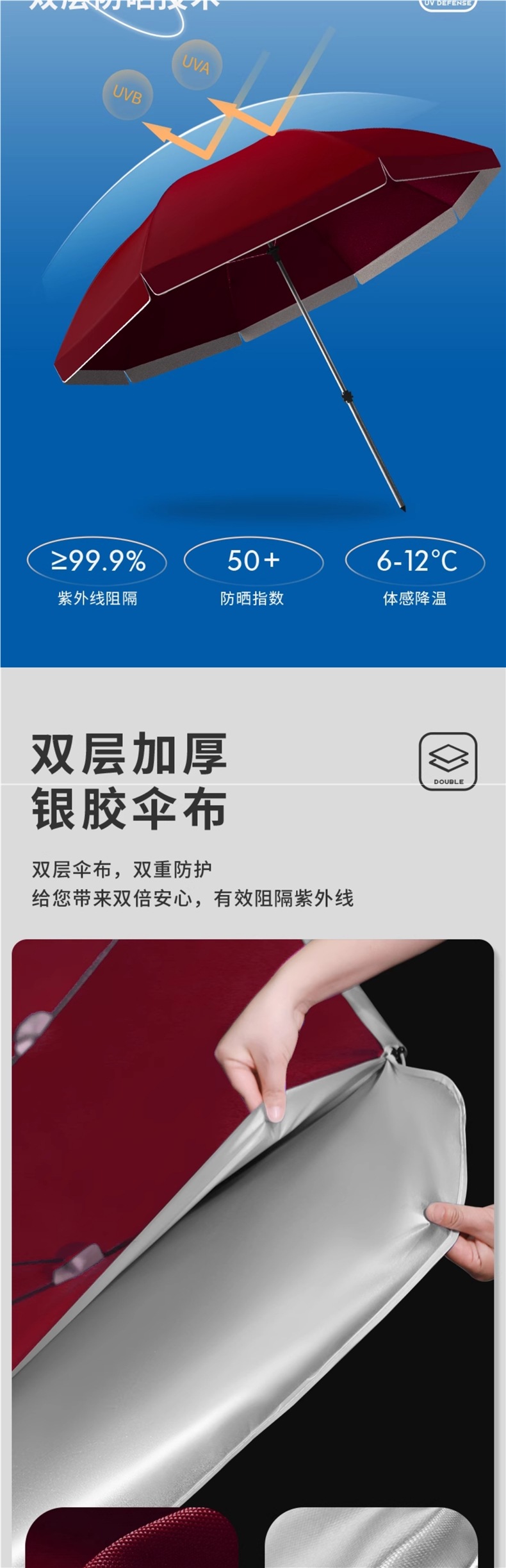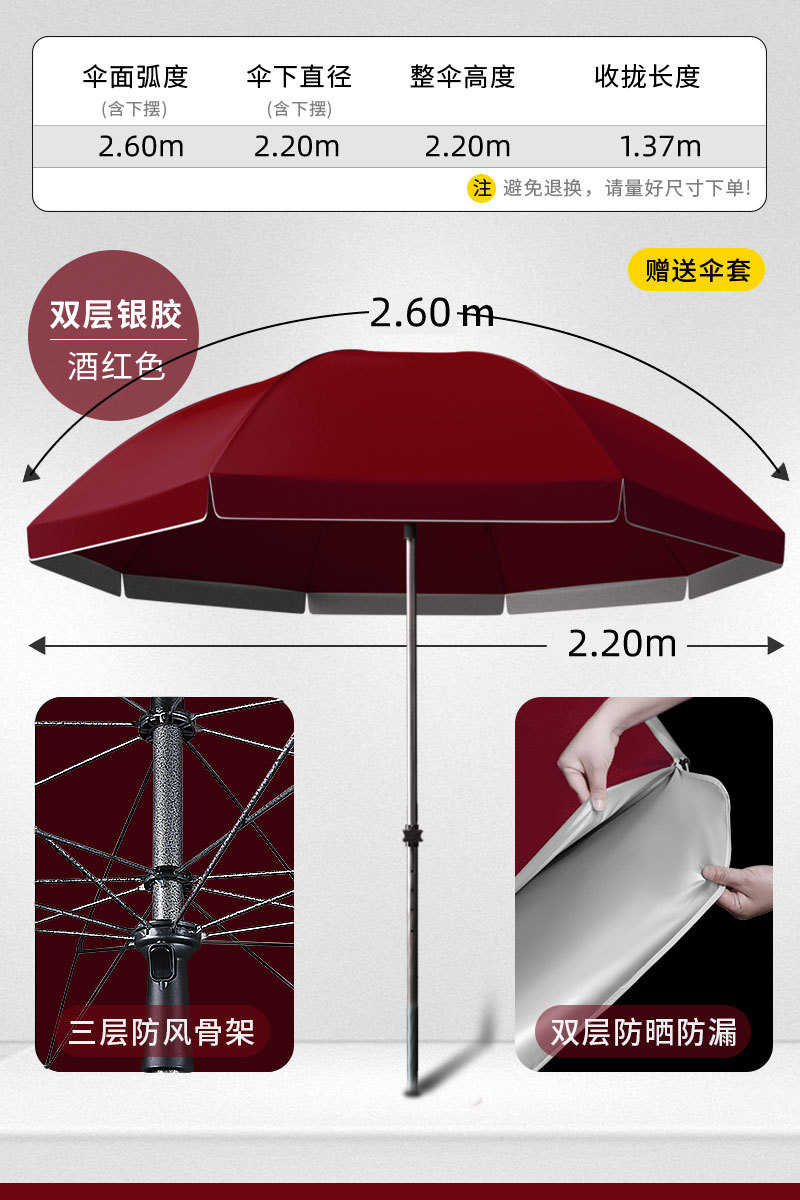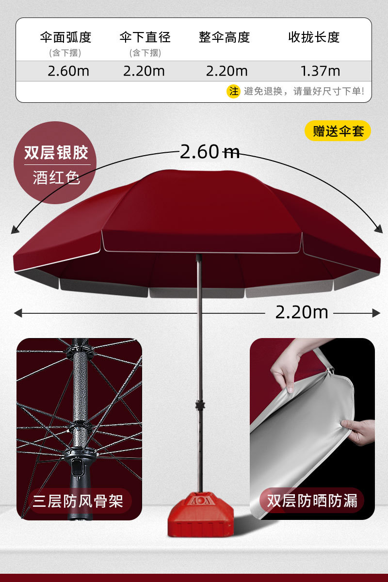 • [이중 자외선 차단 및 누수 방지] 2.2m 스몰 버건디 - 베이스 포함