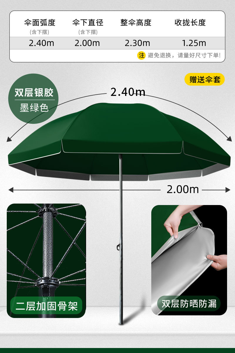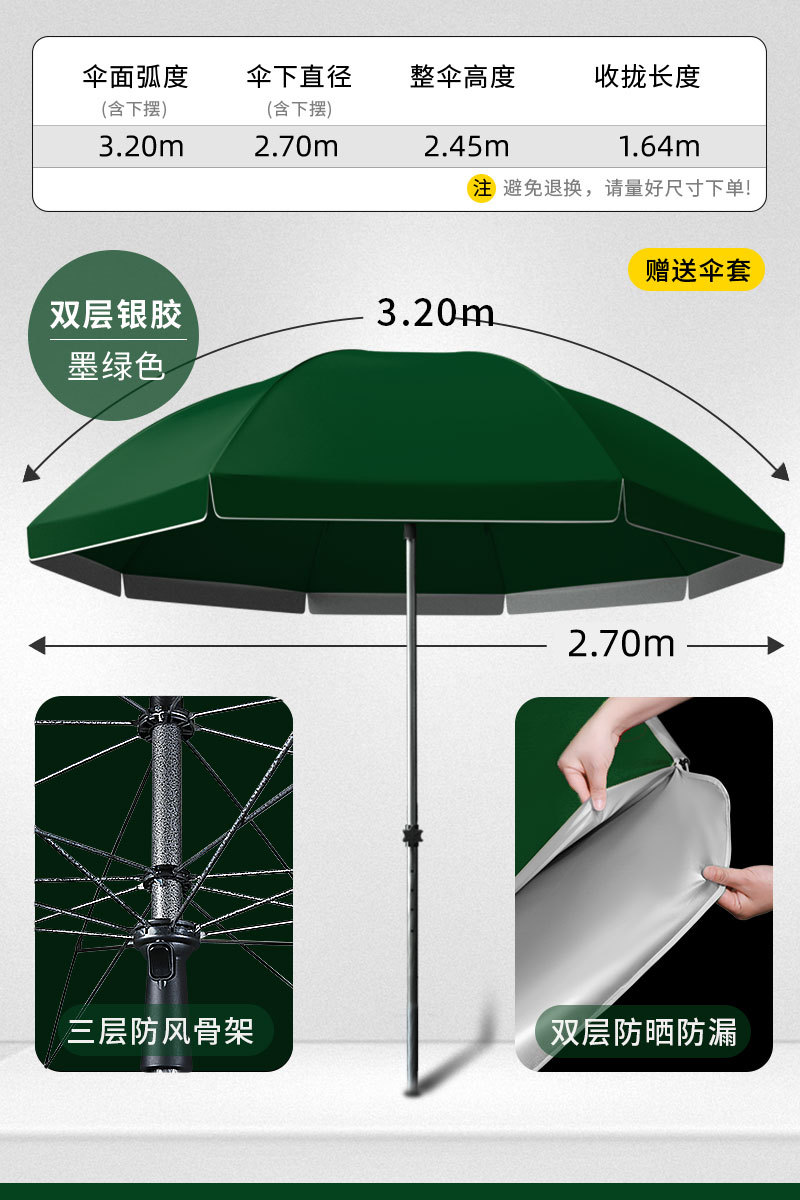 • [이중우산천 + 삼중우산걸이] 2.8m 중형 짙은 녹색 - 베이스 없음