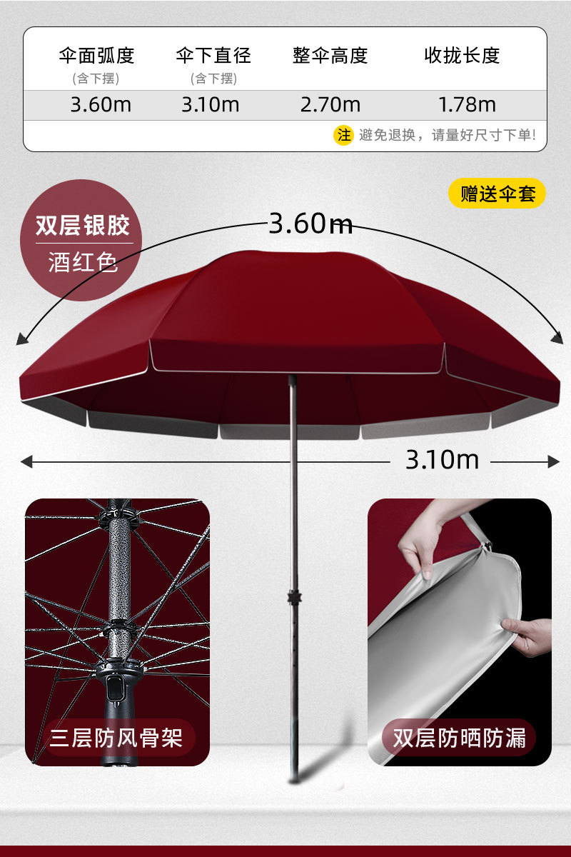 • [이중우산천 + 삼중우산걸이] 3.6m 특대 버건디 - 베이스 포함