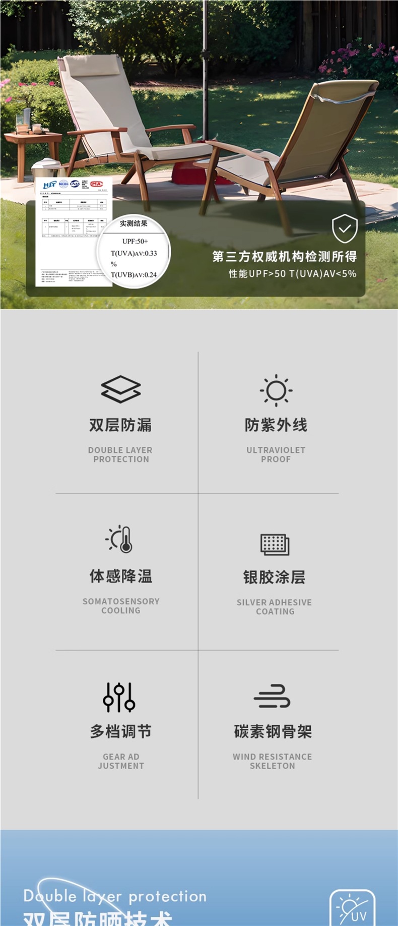 • [이중 우산 천 + 삼중 우산 프레임] 3.4m 특대 사파이어 블루 - 베이스 포함