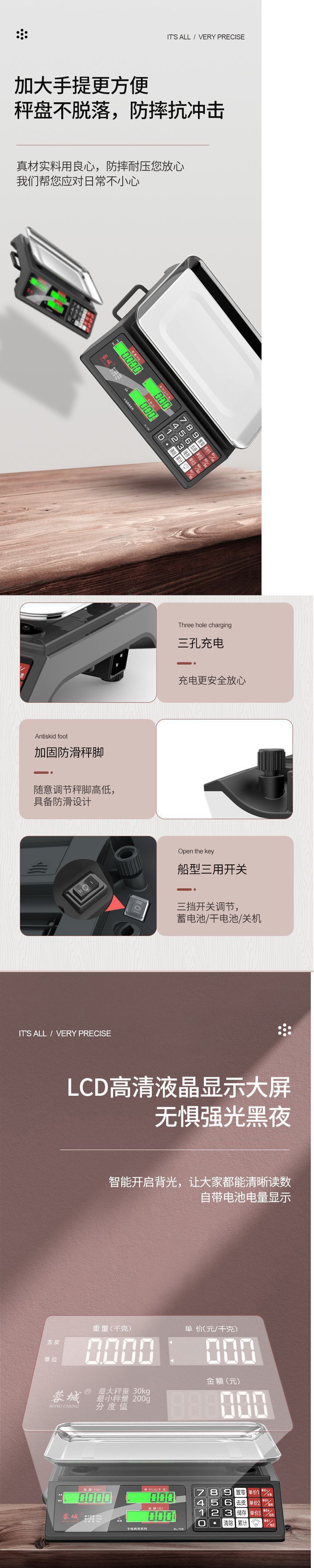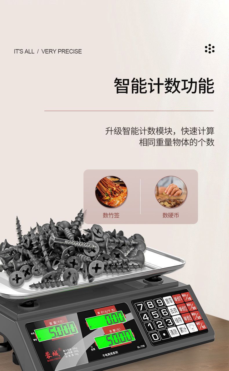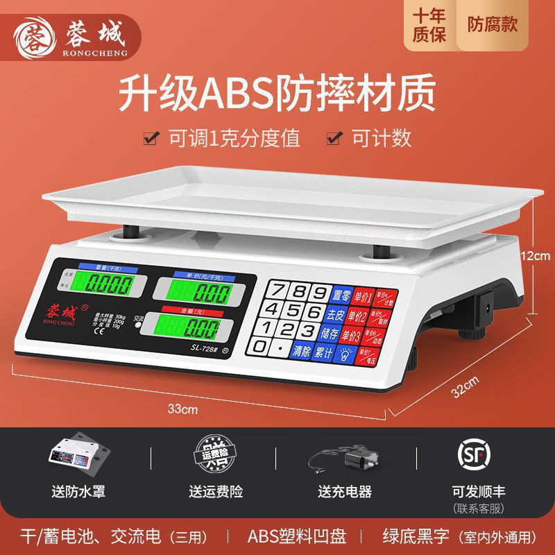 Rongcheng 전자 저울 상업용 소규모 비즈니스 가정용 30kg 전자 저울 야채 판매 및 야채 판매대 무료 배송 기타스토어 가기