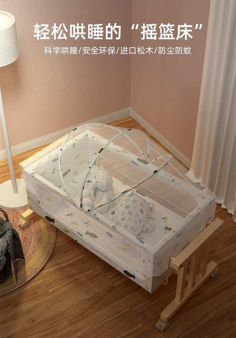 여름 아기 유아용 침대 요람 간단한 쉐이크 베드 단단한 나무 유아용 침대 1-3 세 Yaoyao 의자 이동식 요람스토어 가기