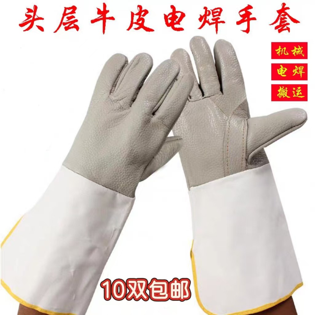 소가죽 용접 장갑, 두껍고 부드럽고 길어진, 용접공을 위한 특수 화상 방지, 고온 및 내마모성 노동 보호 장치