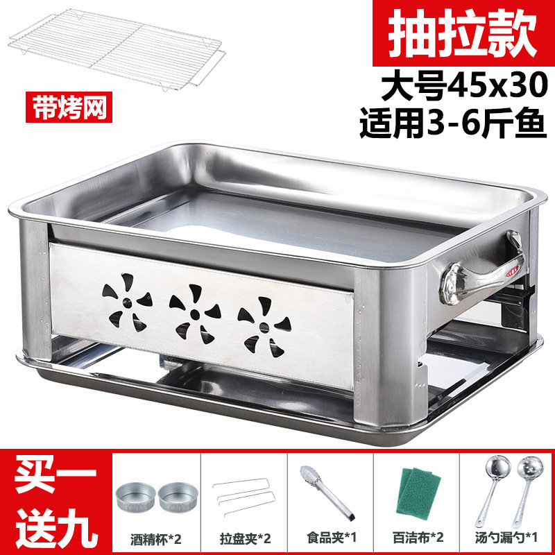 구이 생선 오븐 스테인레스 스틸 상업용 레스토랑 생선 구이 접시 가정용 숯불 그릴 숯불 오븐 직사각형 알코올 스토브스토어 가기