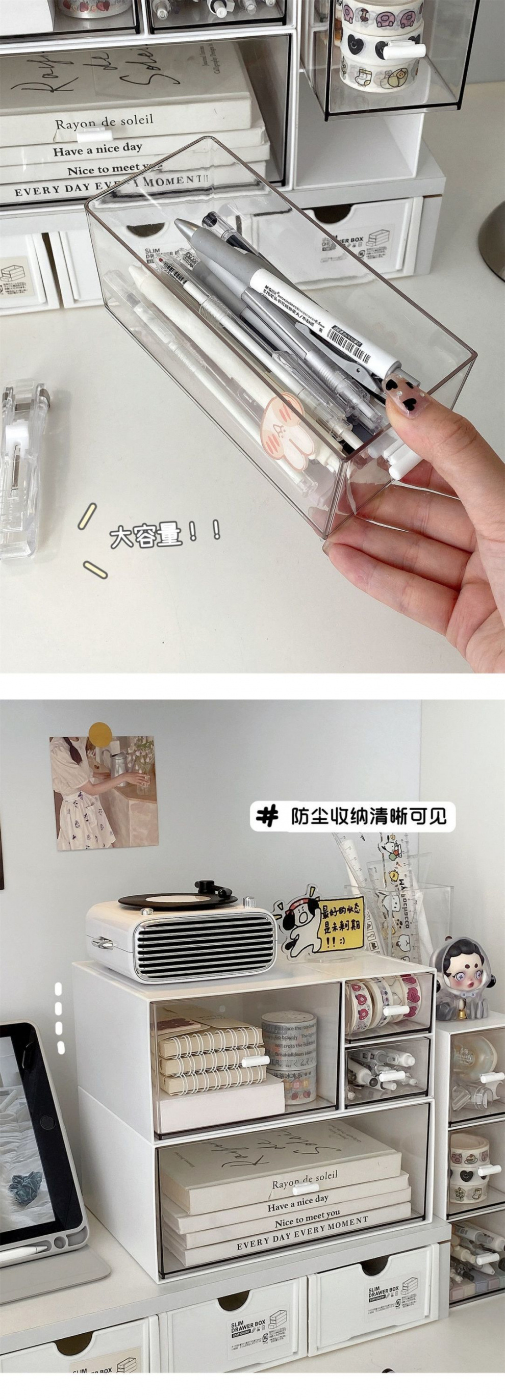 데스크탑 서랍형 수납함 학생 문구 화장품 핸드북 사무실 투명 아크릴 책상 수납 선반