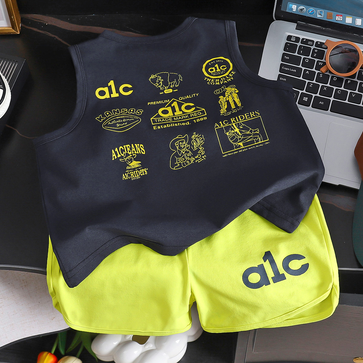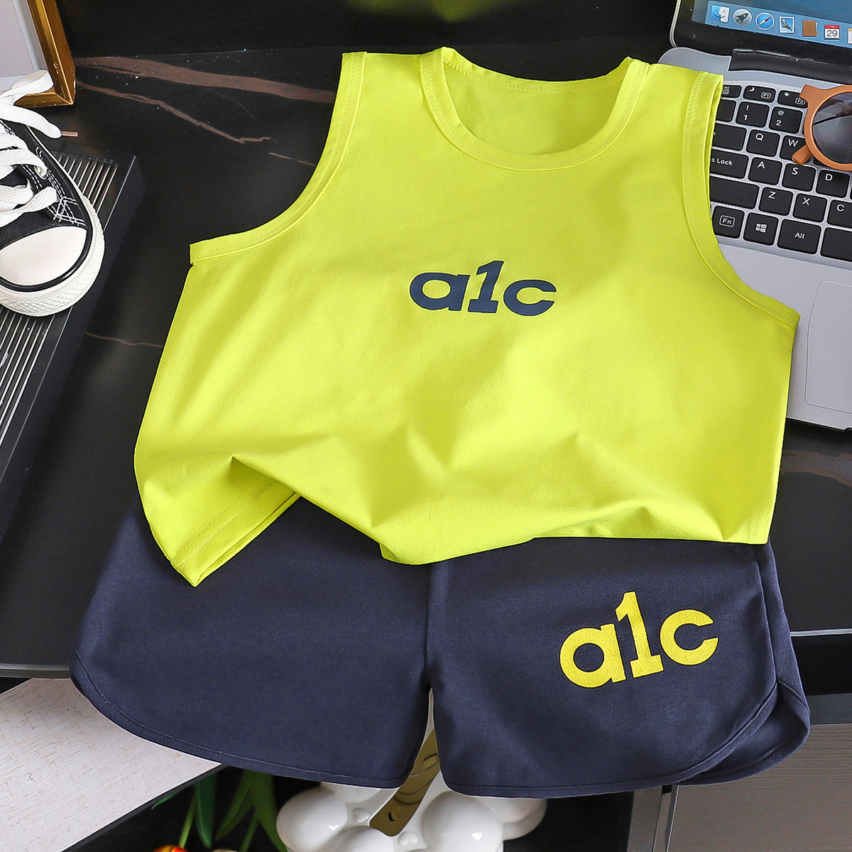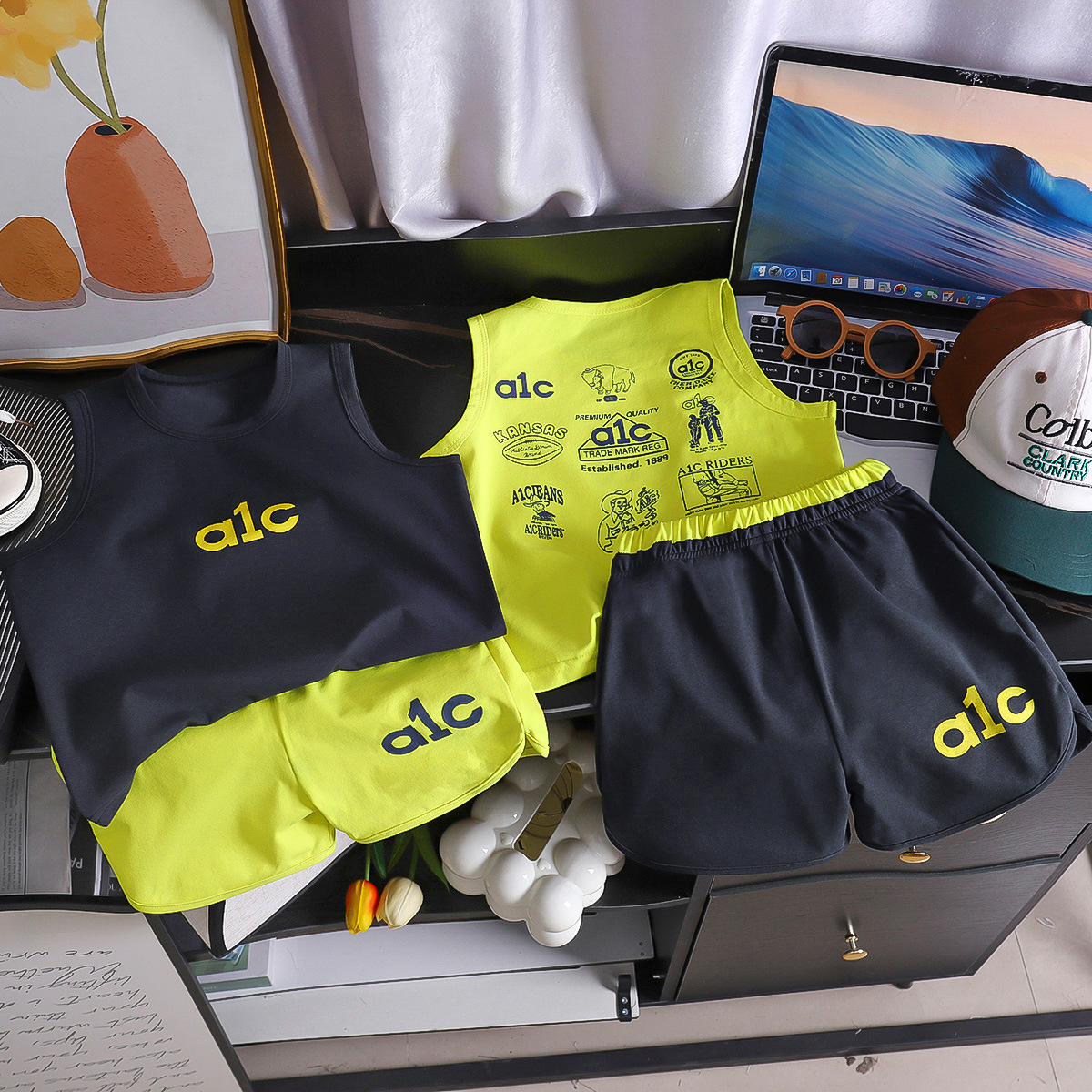 새로운 아동복 세트 2026 여름 남아용 레터 프린트 조끼 세트 아기용 배색 투피스 세트 부드럽고 편안하며 통기성이 좋습니다.