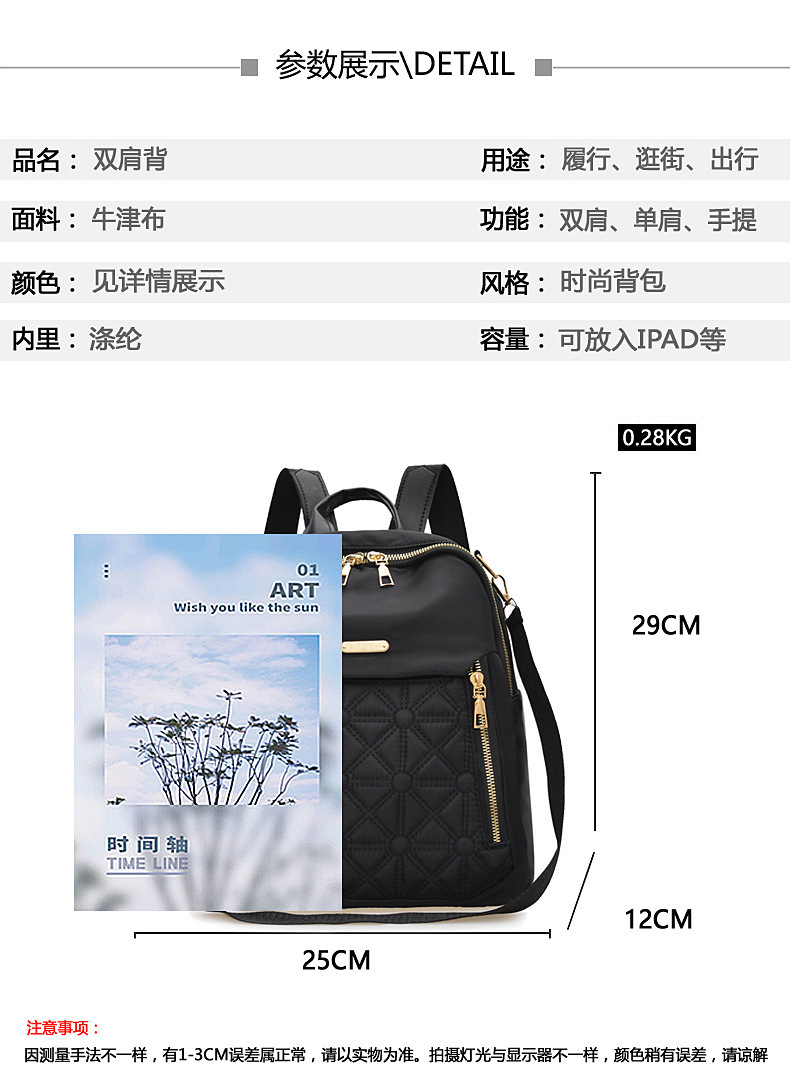 국경 간 여성용 배낭 대용량 캐주얼 여행 학교 가방 새로운 트렌드 다목적 패션 옥스포드 천 배낭