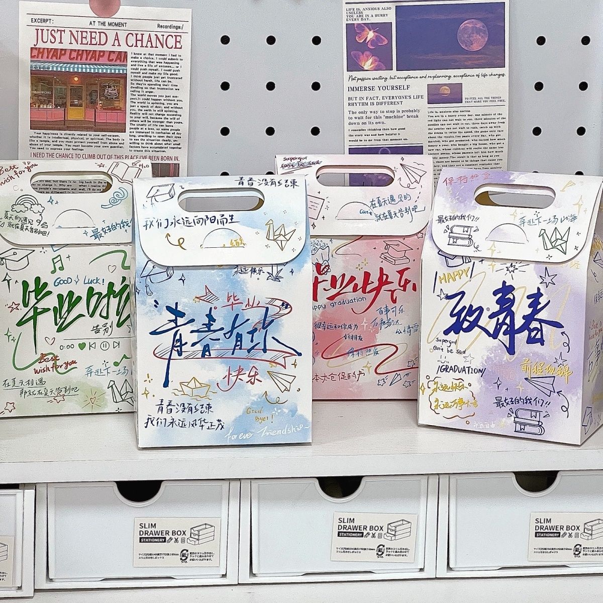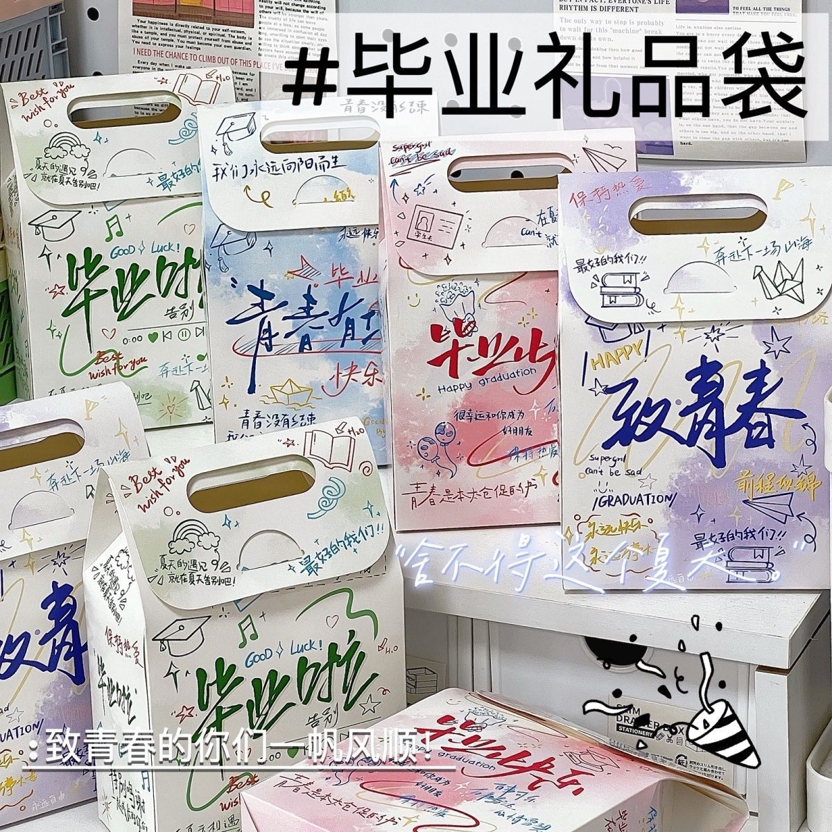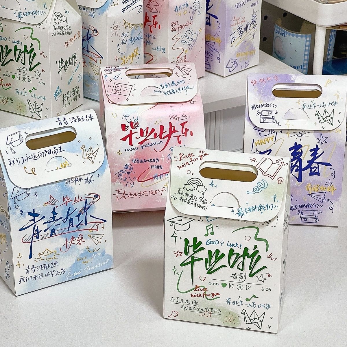 행복한 졸업 휴대용 선물 가방 diy 종이 가방 만화 기능 저장 선물 사탕 졸업 시즌 학생 소녀를위한 선물스토어 가기