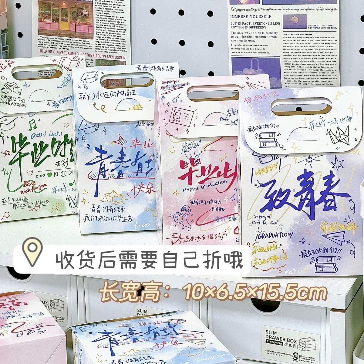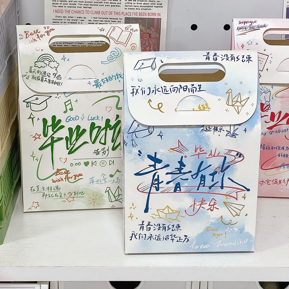 행복한 졸업 휴대용 선물 가방 diy 종이 가방 만화 기능 저장 선물 사탕 졸업 시즌 학생 소녀를위한 선물