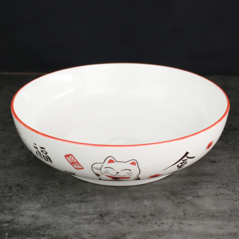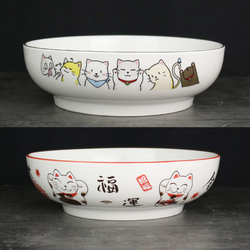 9inch 가정용 세라믹 대형 그릇 수프 그릇 만화 행운의 고양이 삶은 생선 그릇 국수 그릇 마오혈왕 그릇 인터넷 연예인 수프 그릇