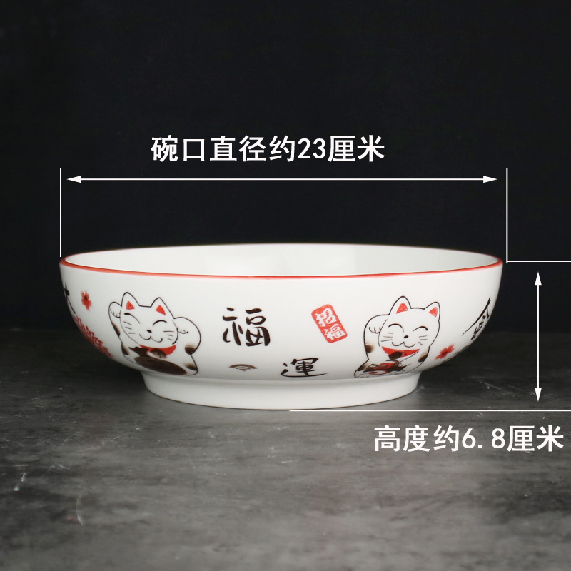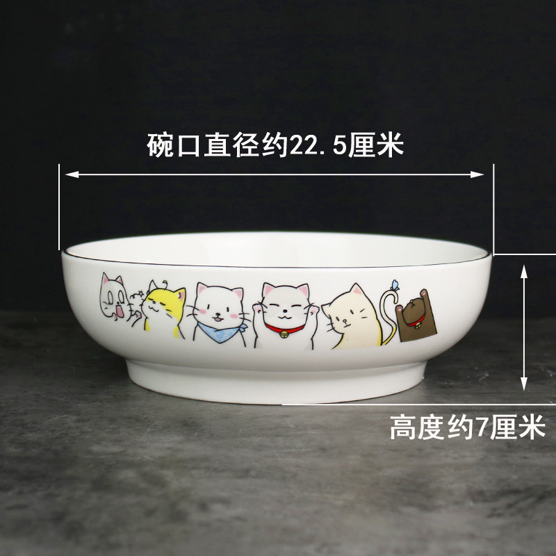 9inch 가정용 세라믹 대형 그릇 수프 그릇 만화 행운의 고양이 삶은 생선 그릇 국수 그릇 마오혈왕 그릇 인터넷 연예인 수프 그릇스토어 가기